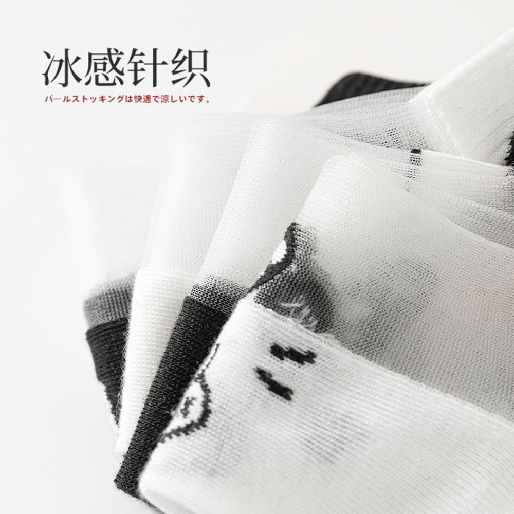 주지 유리 실크 양말 도매 숙녀 여름 얇은 통기성 흑백 고양이 크리스탈 스타킹 짧은 양말