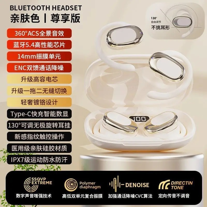 베를린의 독일 목소리 2025 새로운 블루투스 헤드셋 무선 귀 매달린 스포츠 소음 감소 귀가 아니라 오랫동안 착용 할 수있는 무통