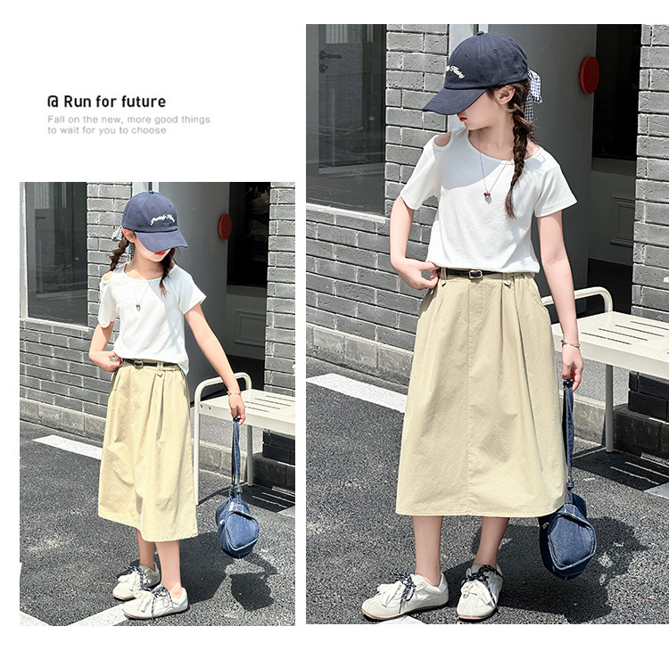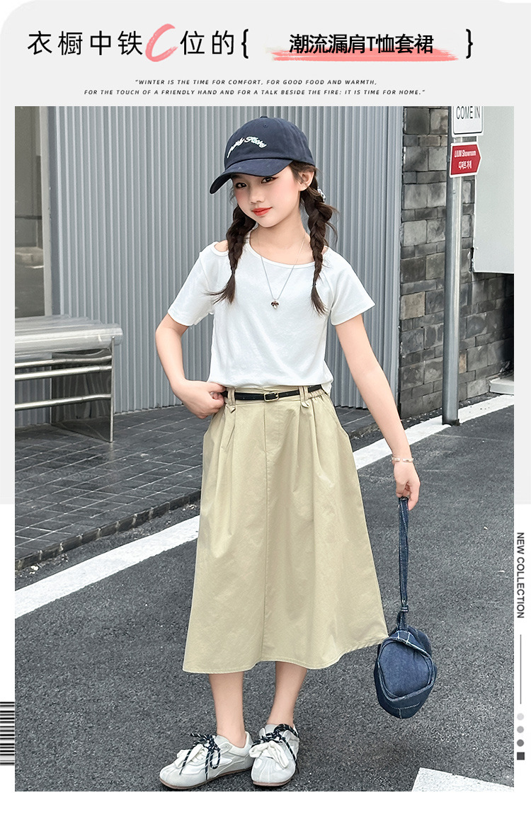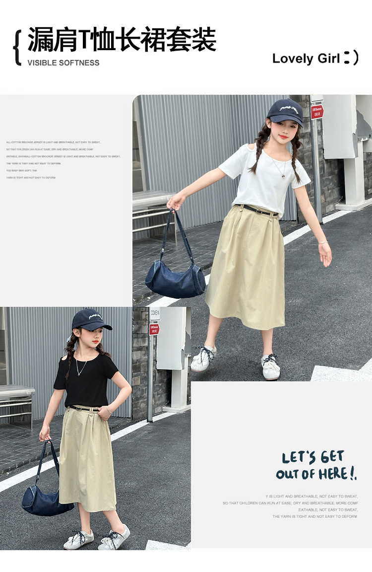 여자 여름 원피스 세트 2025 새로운 서양식 중첩 어린이 반팔 투피스 세트 걸스 패셔너블 리키 어깨 반팔 세트스토어 가기