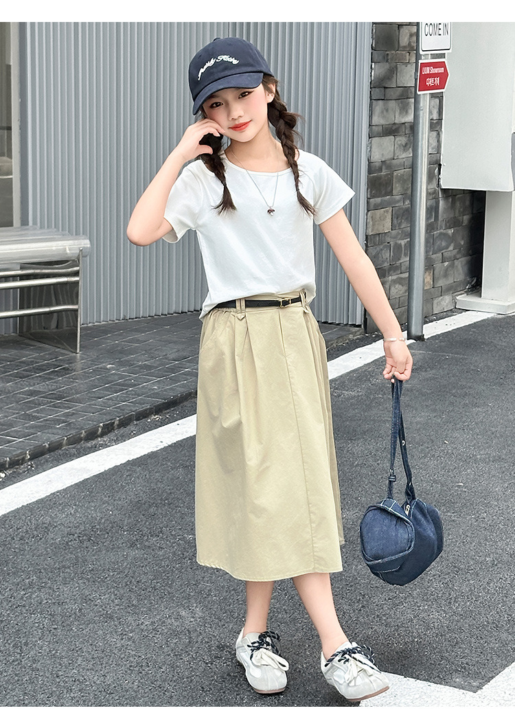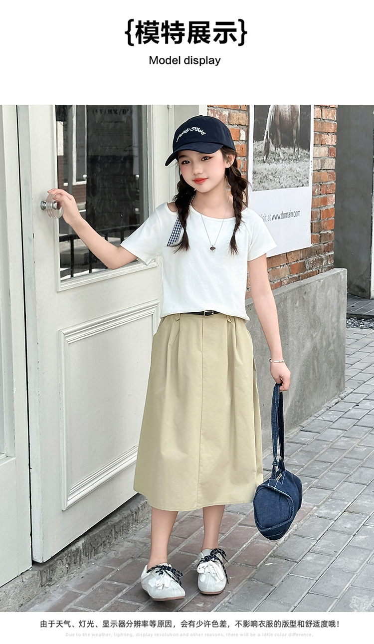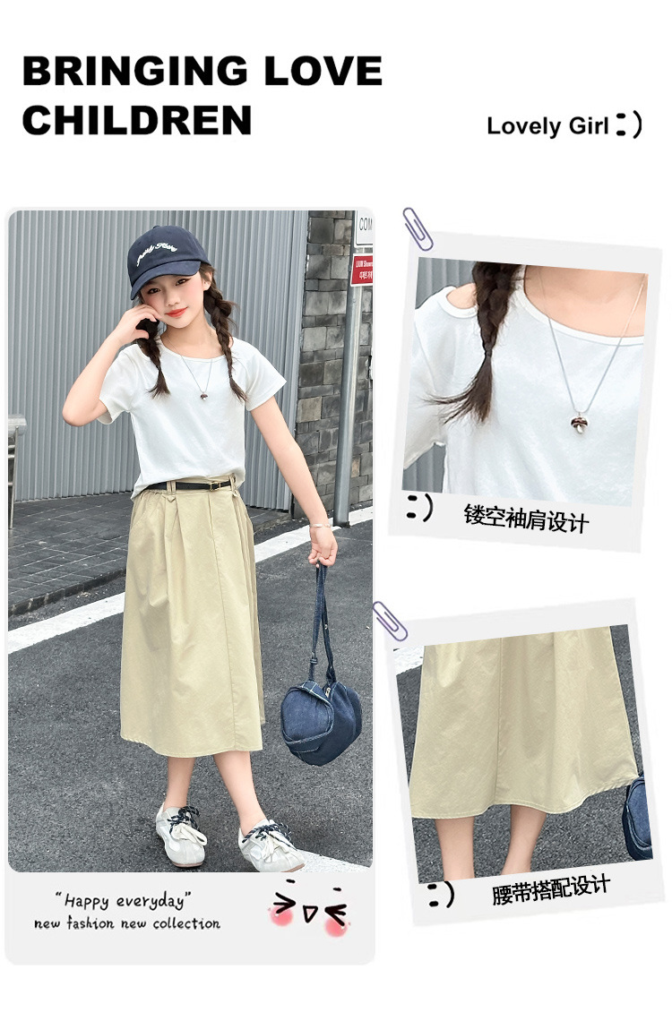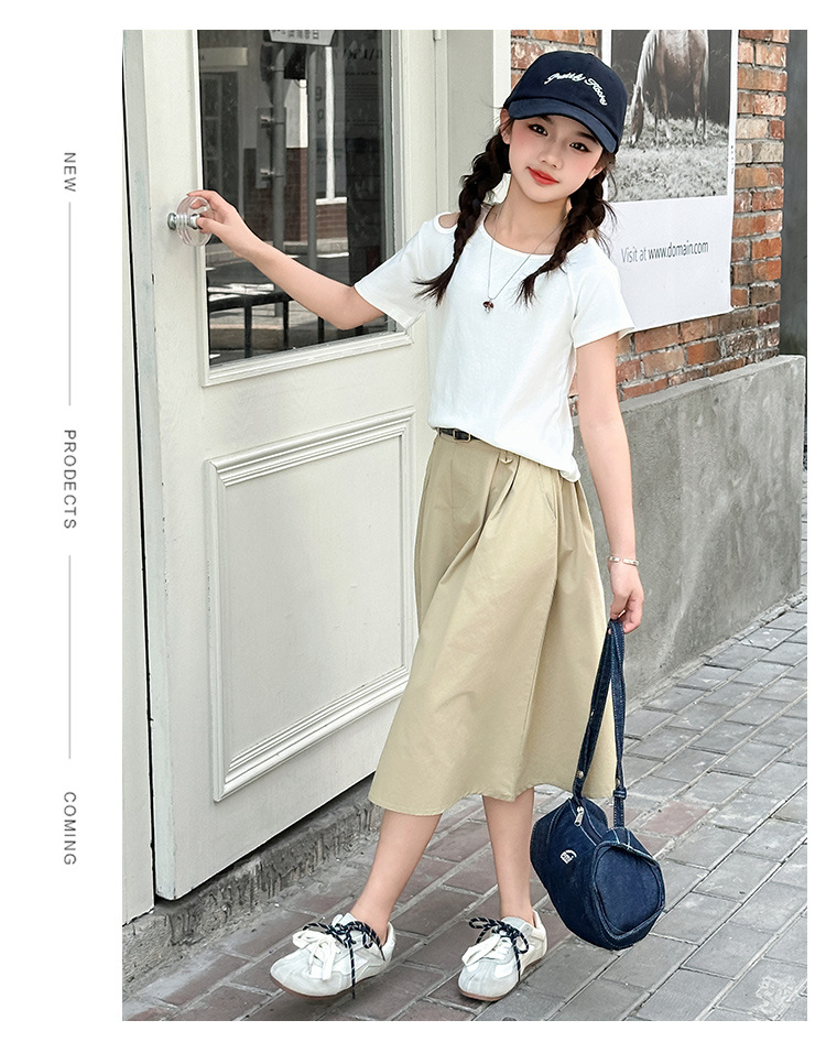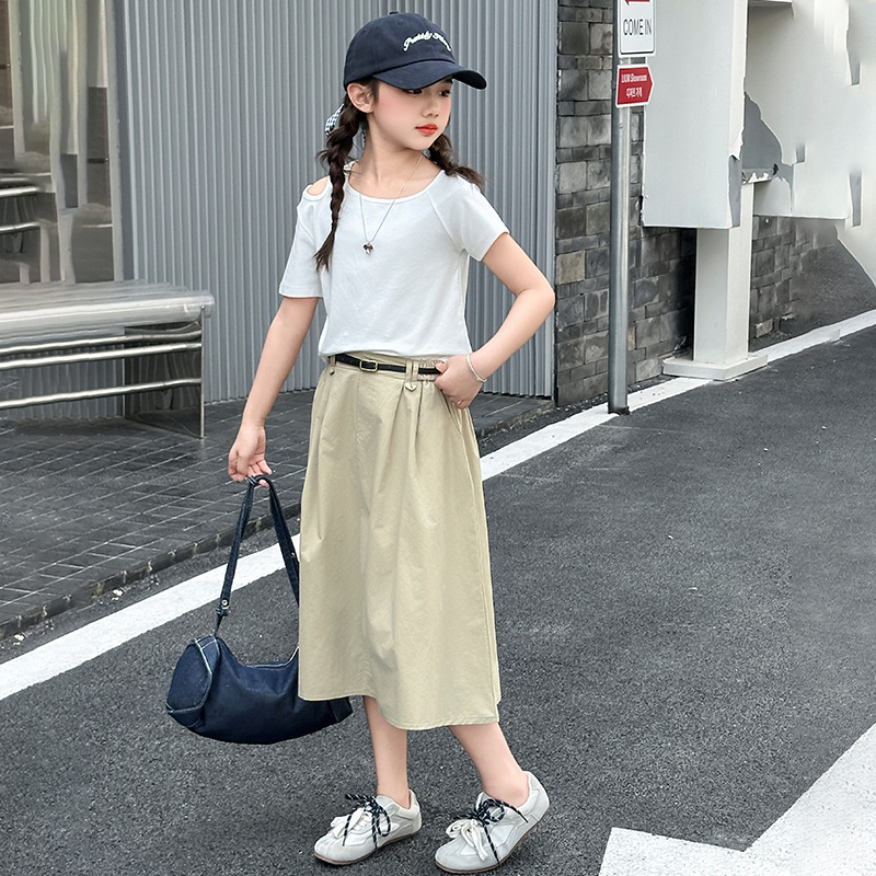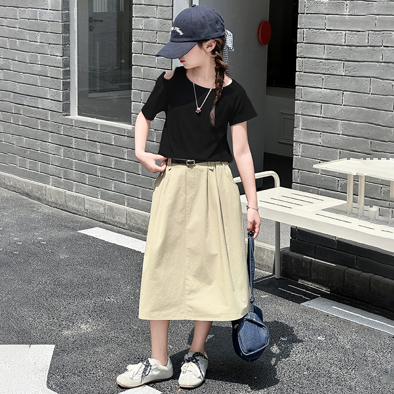 여자 여름 원피스 세트 2025 새로운 서양식 중첩 어린이 반팔 투피스 세트 걸스 패셔너블 리키 어깨 반팔 세트