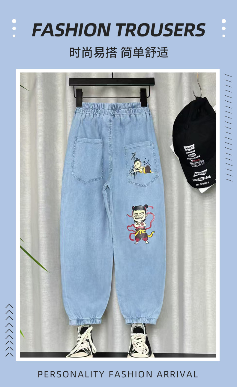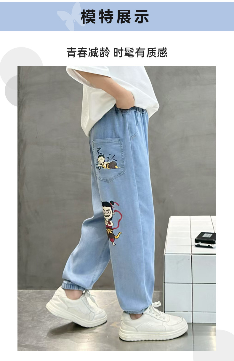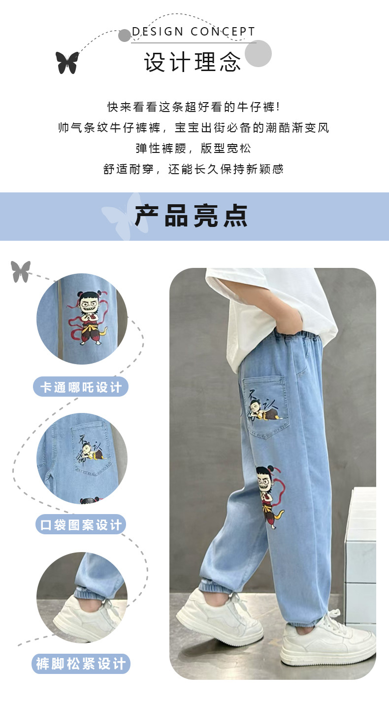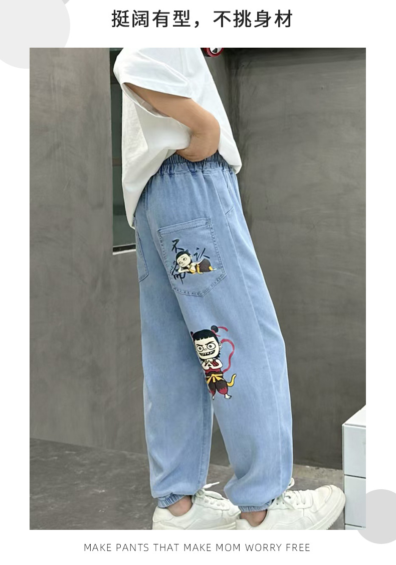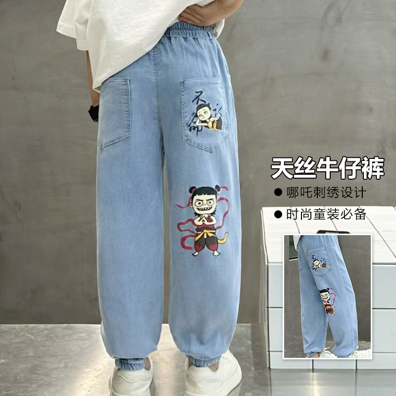 Nezha 어린이 청바지 봄과 가을 2025 새로운 대형 어린이 서양식 트렌디 한 소년 봄과 가을 바지 아동복 트렌디 한 바지스토어 가기
