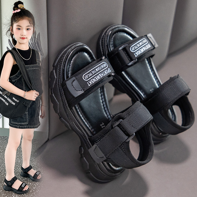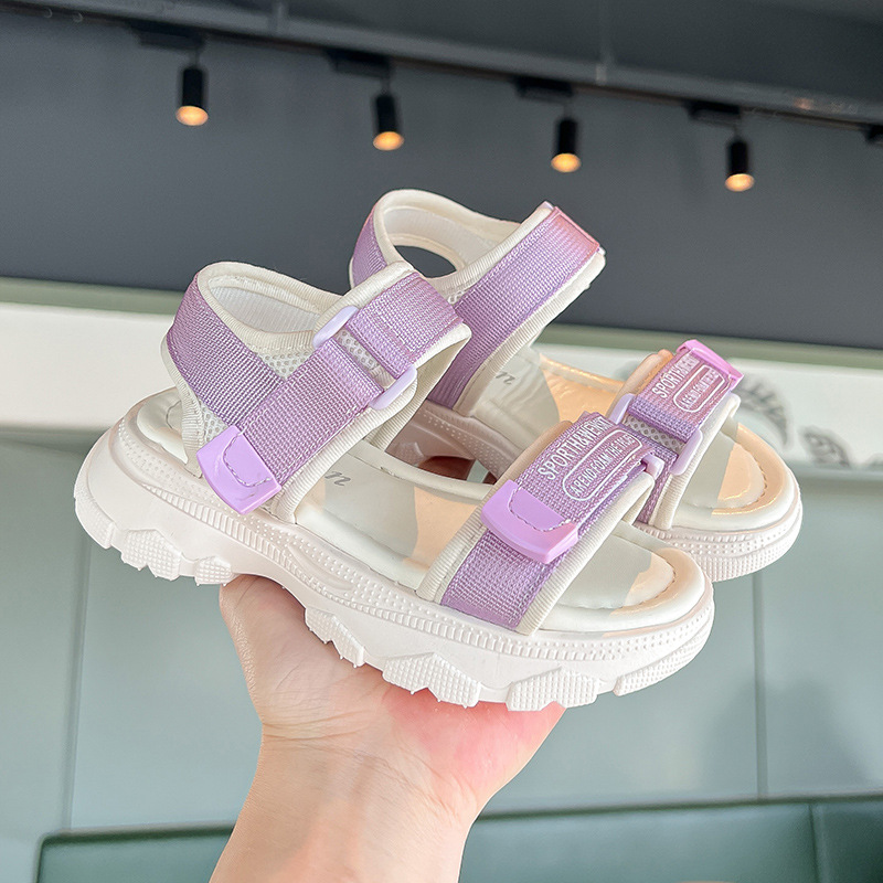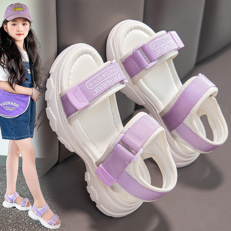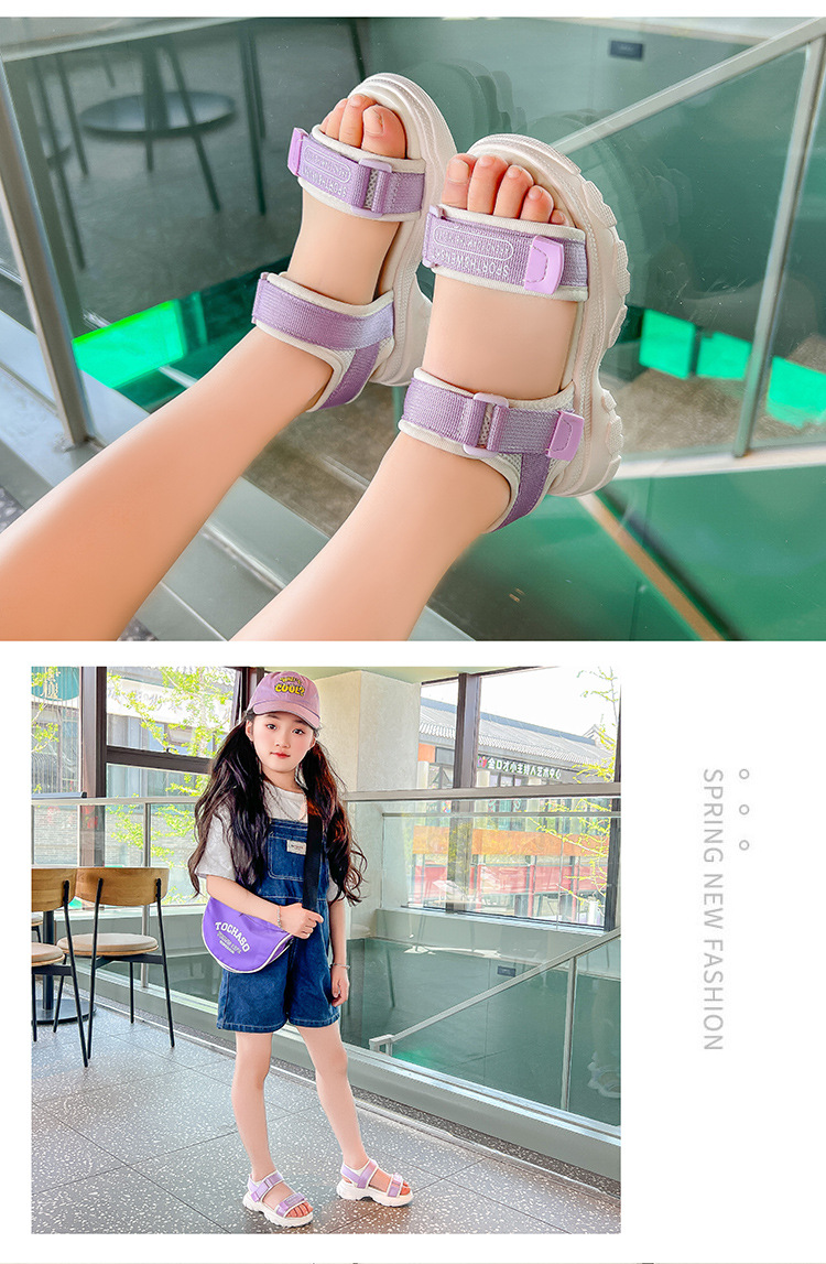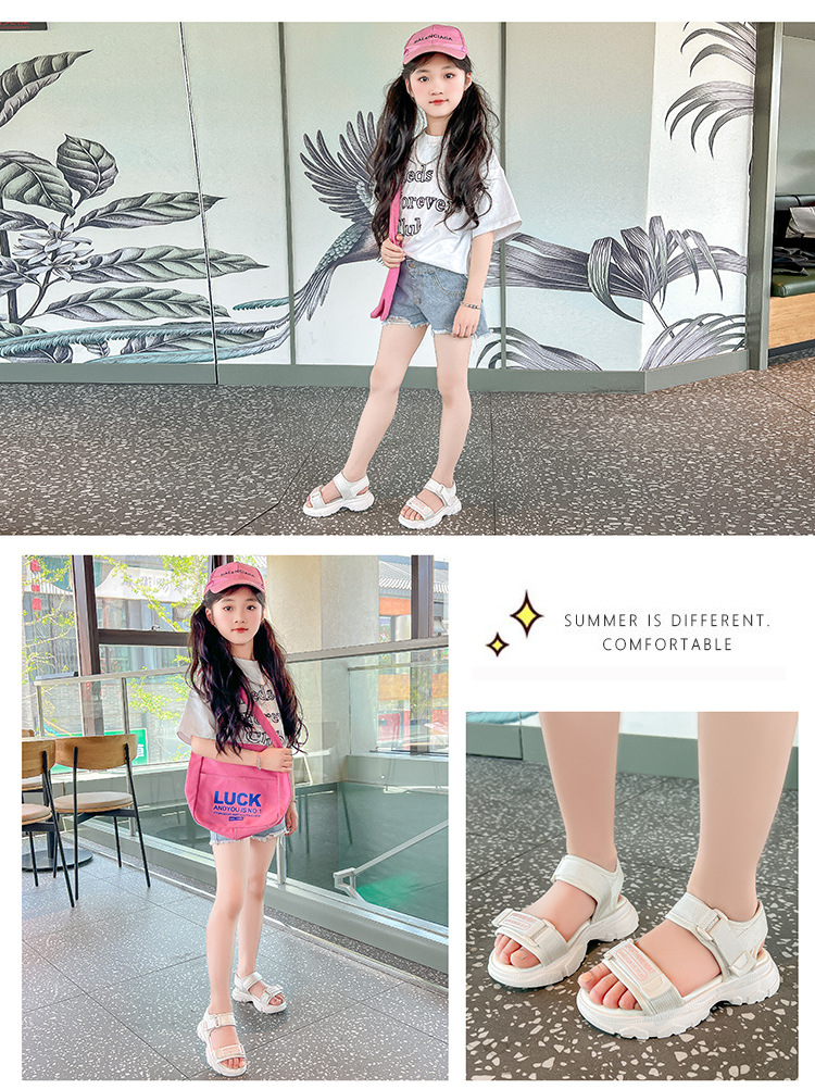 2025 여름 새 소녀 샌들 소프트 솔 벨크로 라이트 캐주얼 학생 스포츠 로마 샌들 벨크로스토어 가기