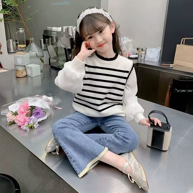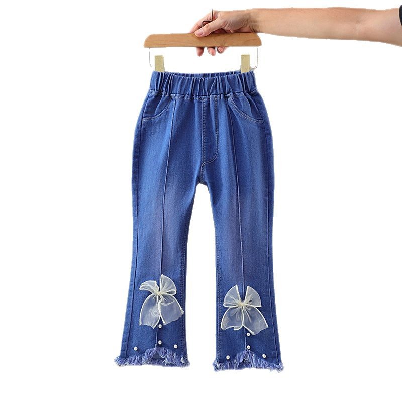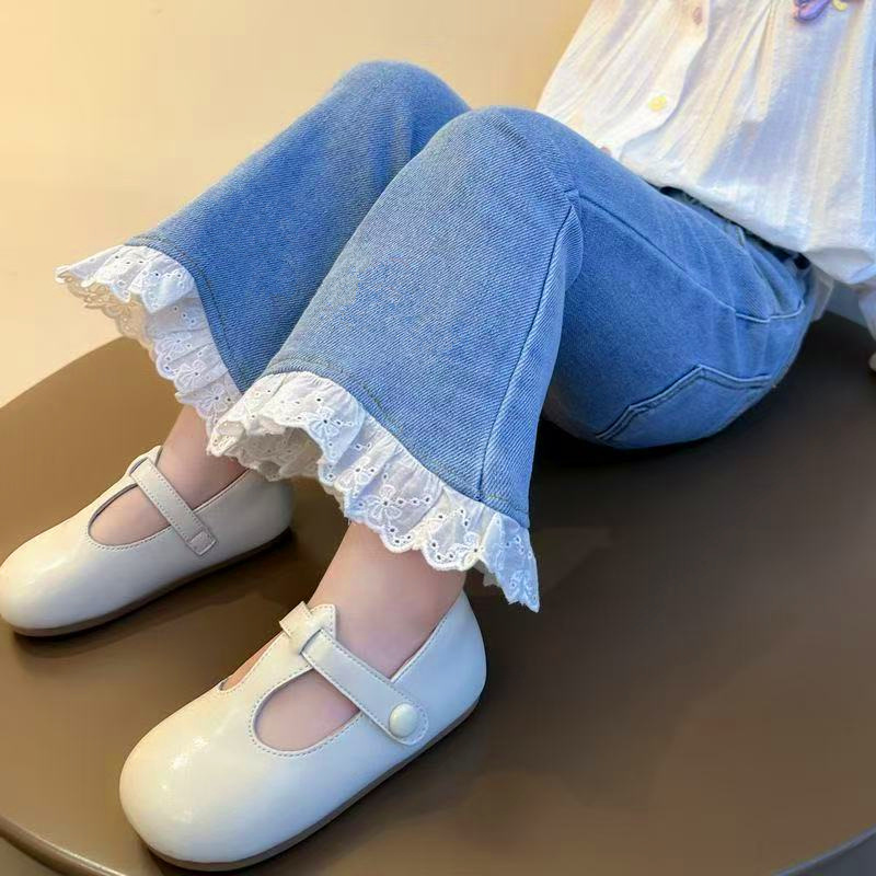소녀 청바지 봄과 가을 2025 새로운 스타일 레이스 한국 스타일 소녀 플라워 바지 대형 어린이를위한 유행 유행 바지스토어 가기