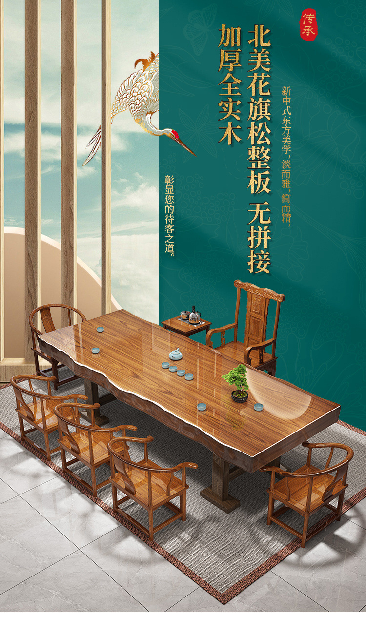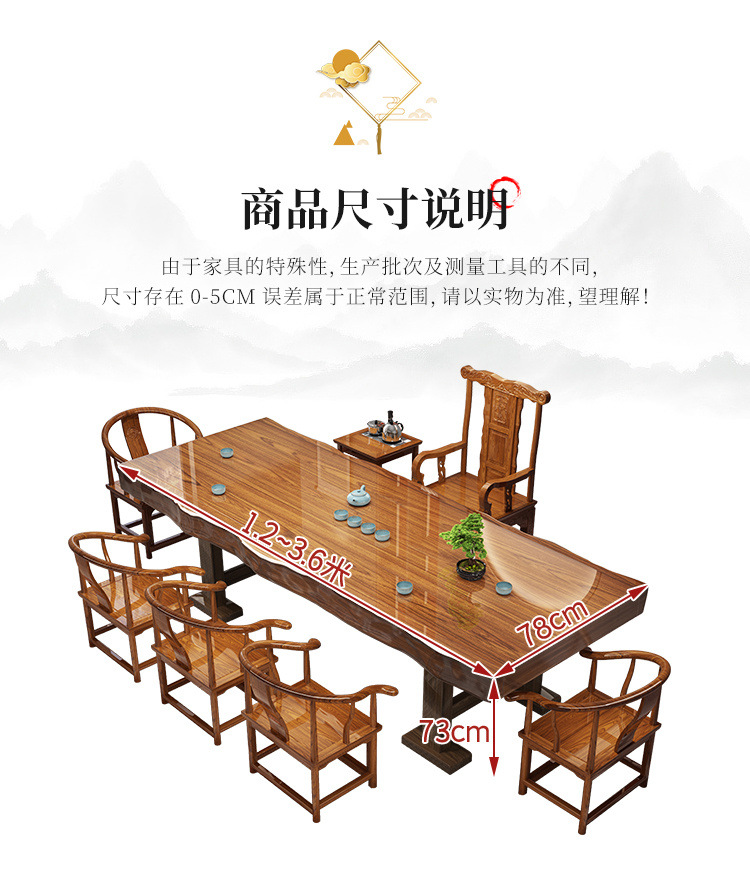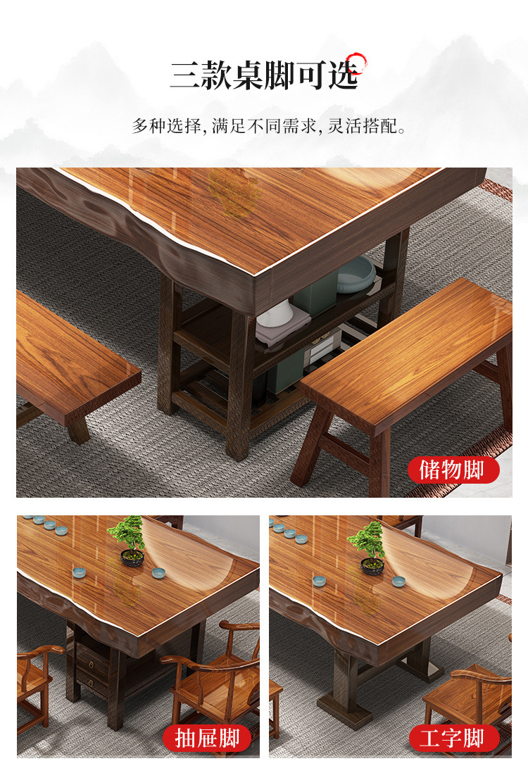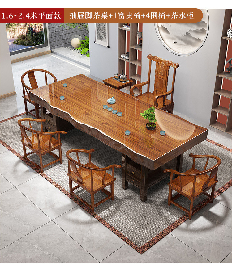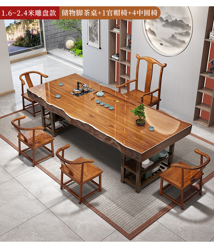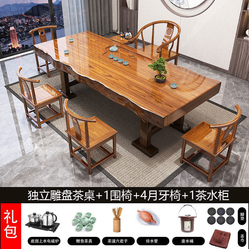 전체 플레이트 큰 접시 단단한 나무 차 테이블과 의자 조합 새로운 중국 스타일 커피 테이블 거실 홈 사무실 차 테이블 차 테이블 통합 차 테이블