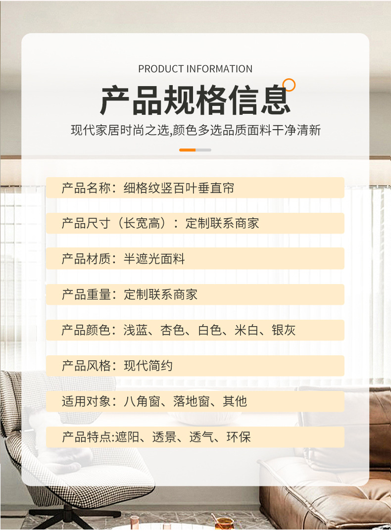 반차광 수직 블라인드 반발코 수직 블라인드 수직 블라인드 거실 고급 격자 무늬 반차광 패브릭 바닥 창 커튼