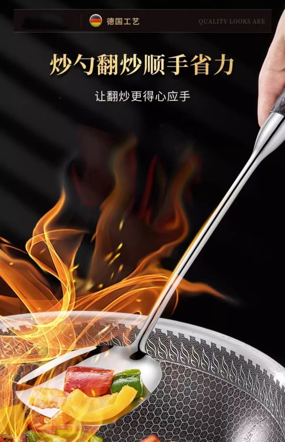 독일 스테인레스 스틸 주걱 세트 전체 가정용 볶음 삽 주방 용품 수프 볶음 숟가락 두꺼운 특수 대외 무역 도매스토어 가기