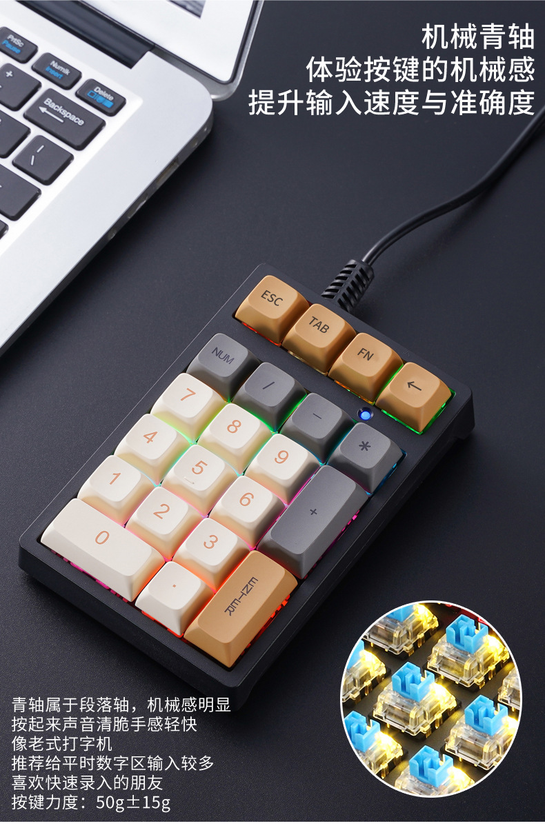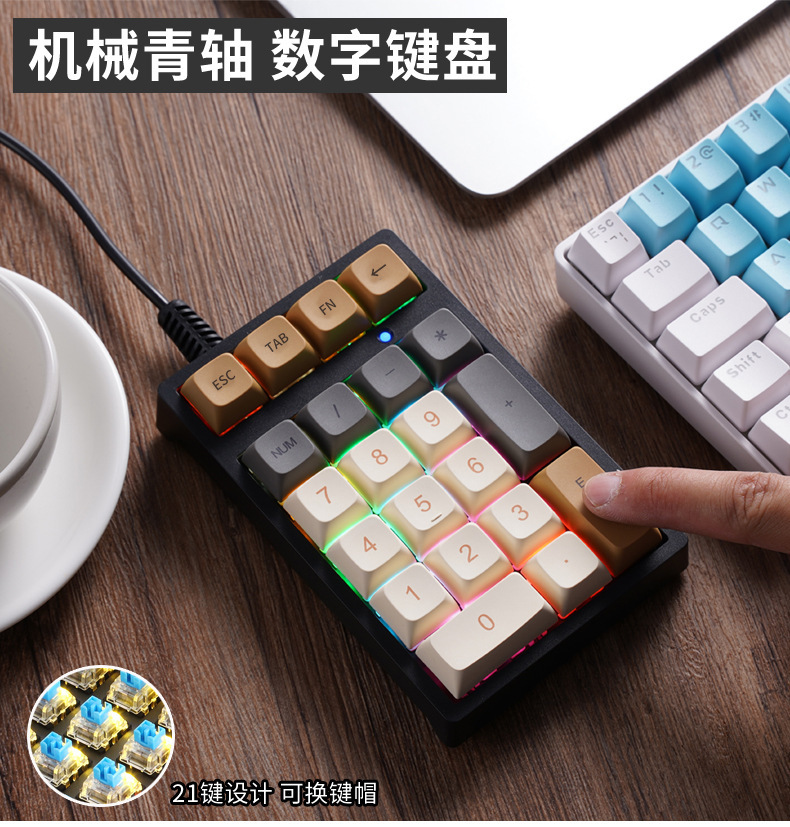 Karlu Duck T21 디지털 기계식 키보드 녹색 축 노트북 외부 소형 키보드 재무 회계 출납원 키보드 RGB스토어 가기