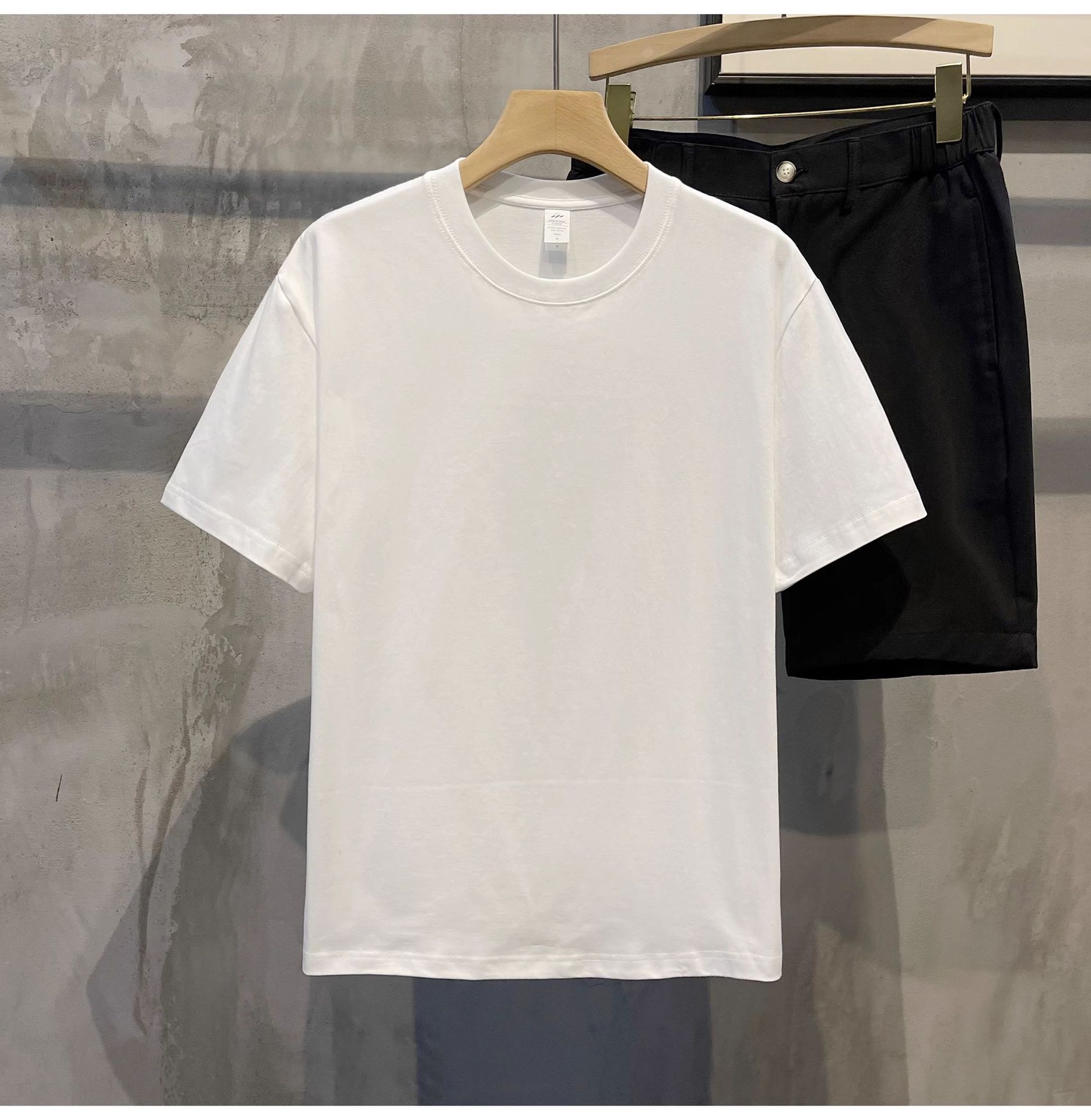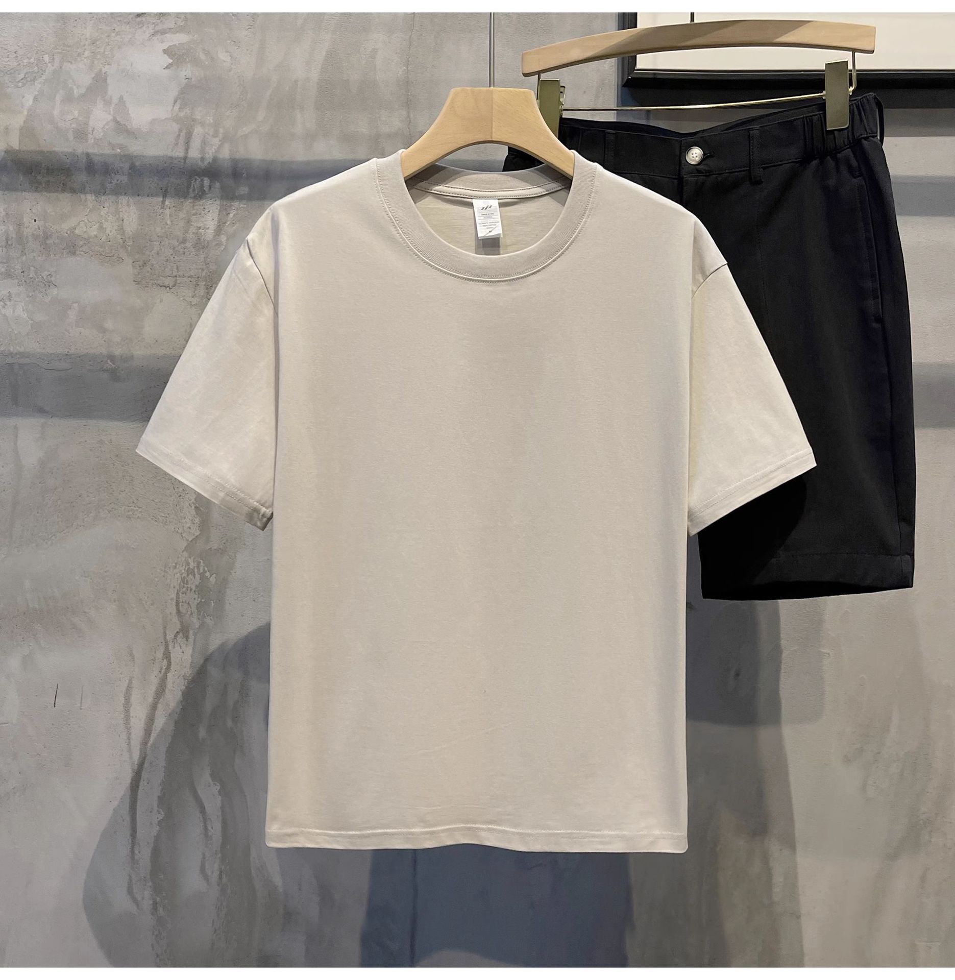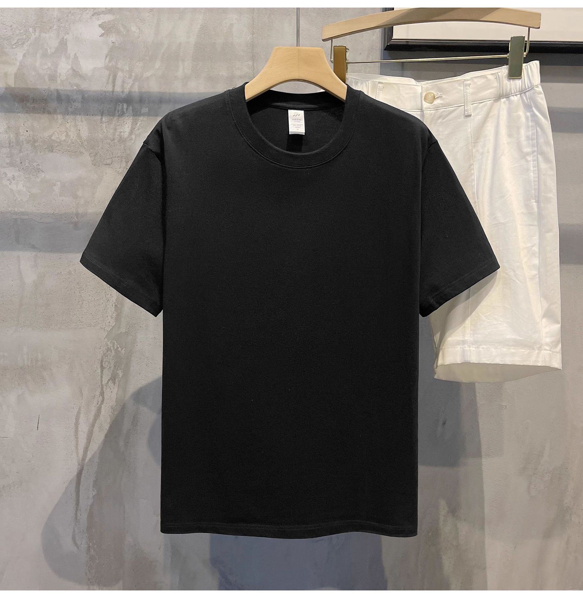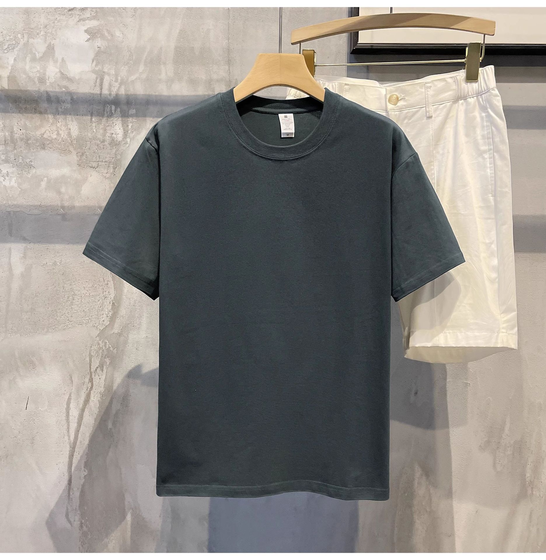 간단한 라운드 넥 코튼 쇼트 슬리브 탑 한국 루즈 솔리드 컬러베이스 셔츠 여름 올 매치 티셔츠 남자 그물 하프 슬리브 탑스토어 가기