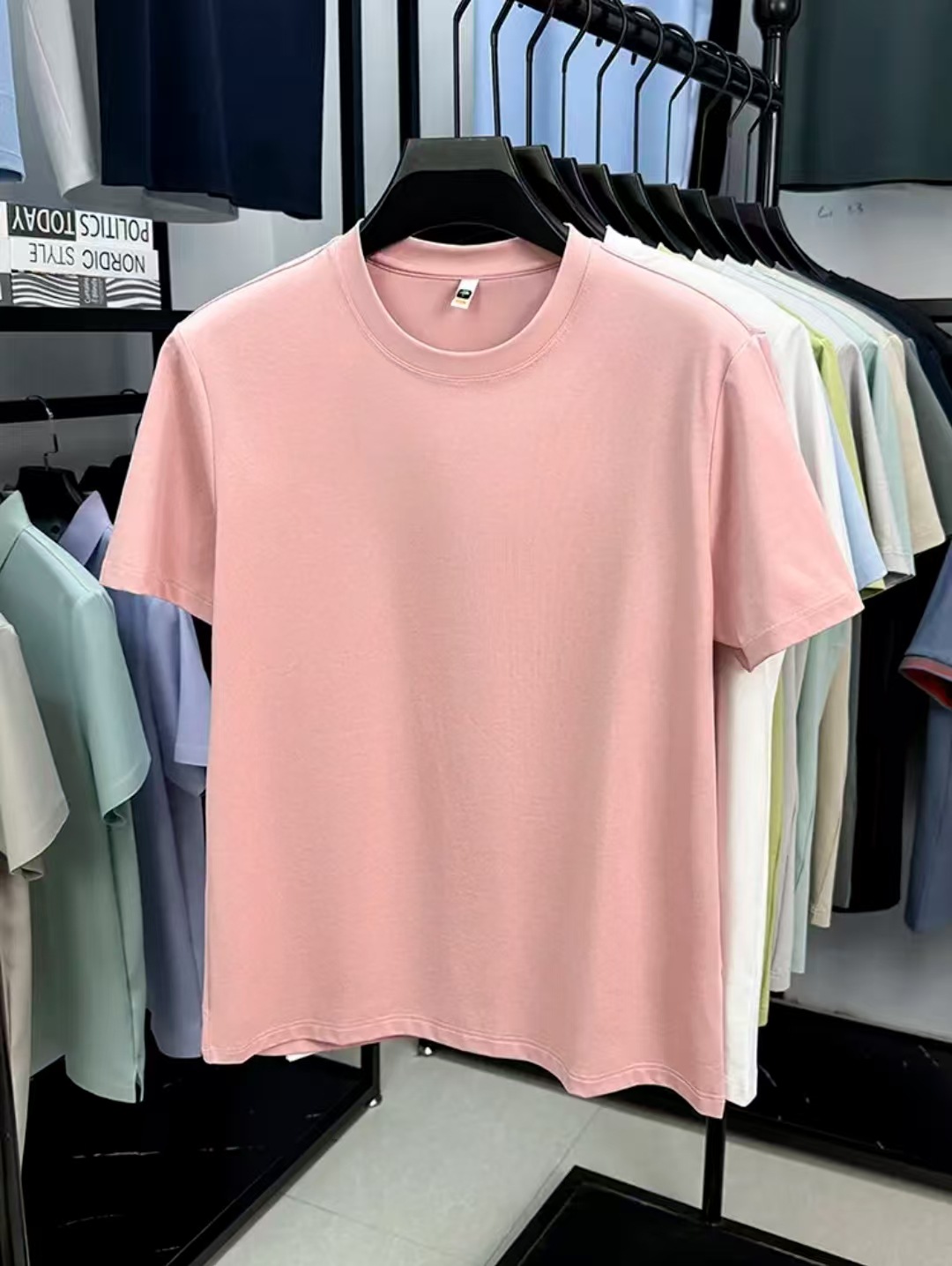 간단한 라운드 넥 코튼 쇼트 슬리브 탑 한국 루즈 솔리드 컬러베이스 셔츠 여름 올 매치 티셔츠 남자 그물 하프 슬리브 탑