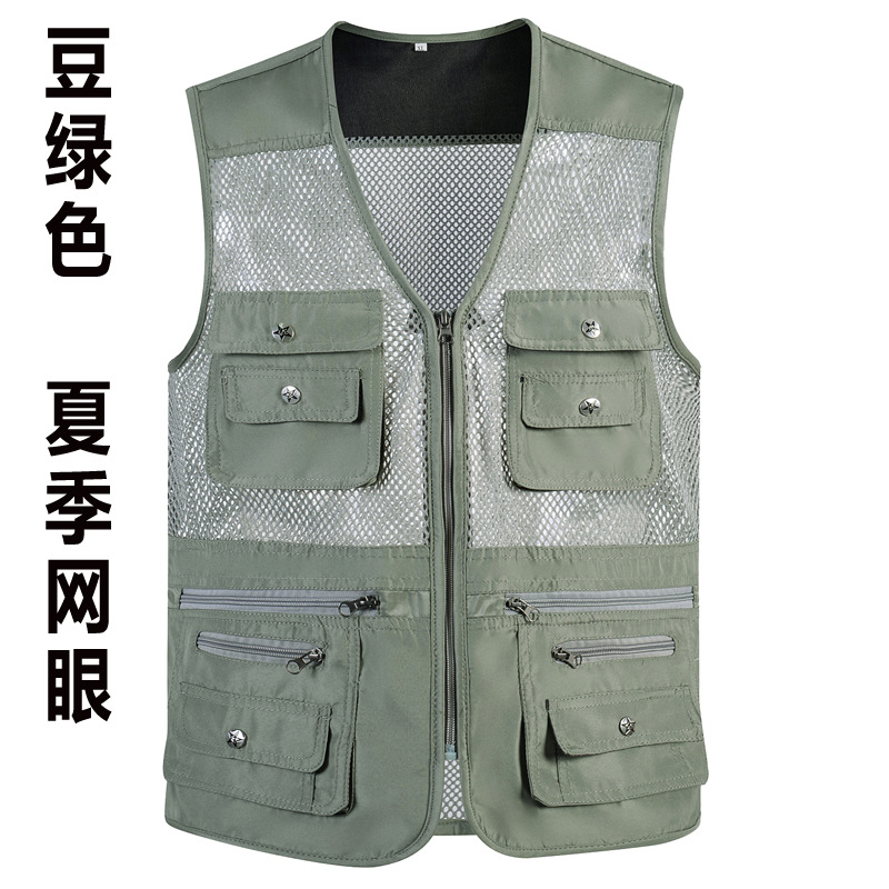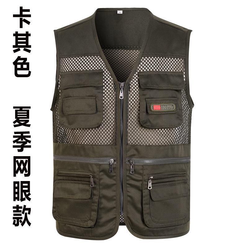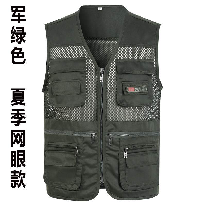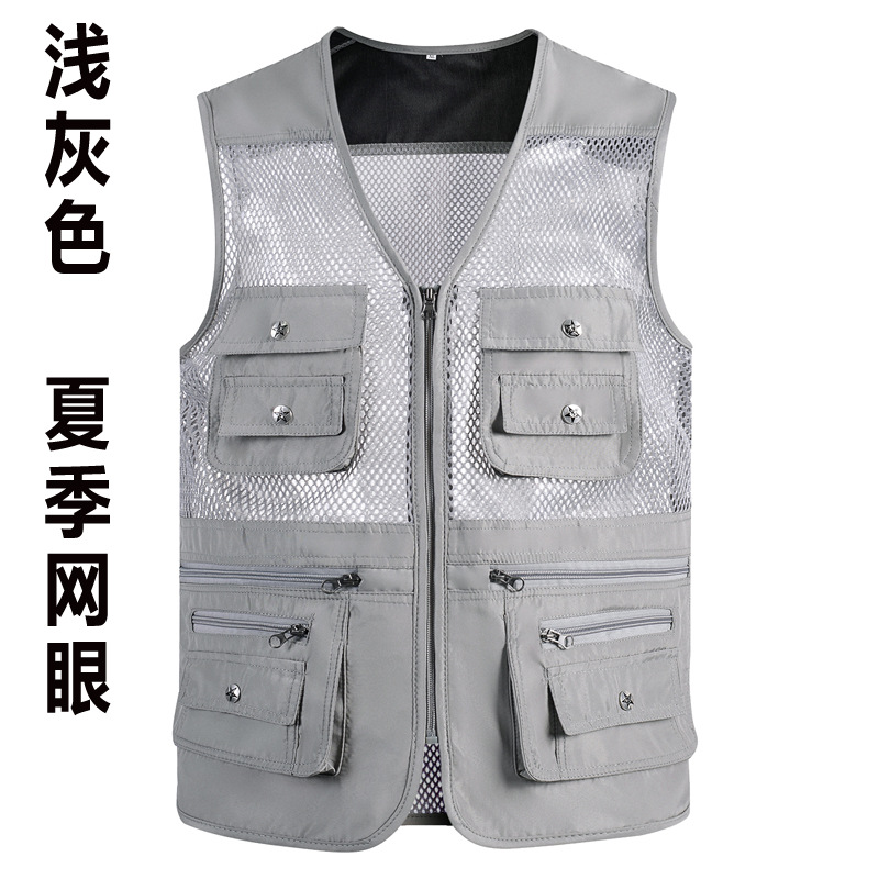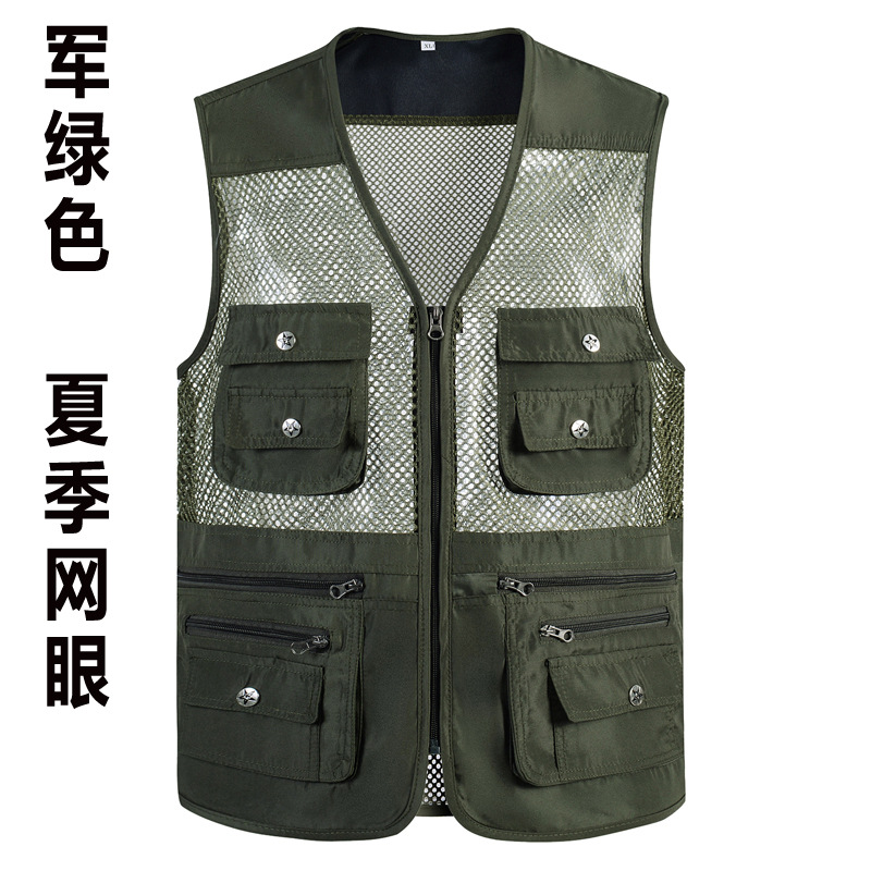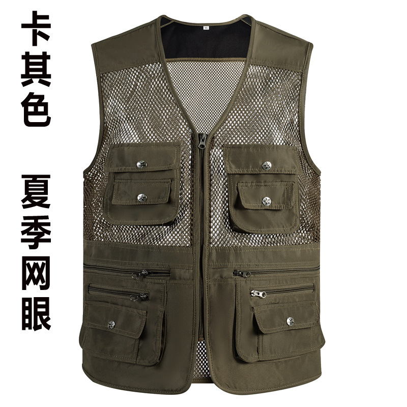 여름 얇은 메쉬 조끼 등산 빠른 건조 캐주얼 멀티 포켓 중년 남성 사진 낚시 V 넥 플러스 사이즈스토어 가기