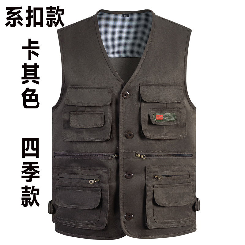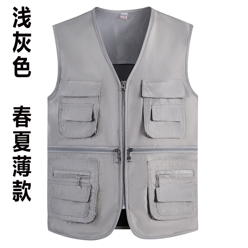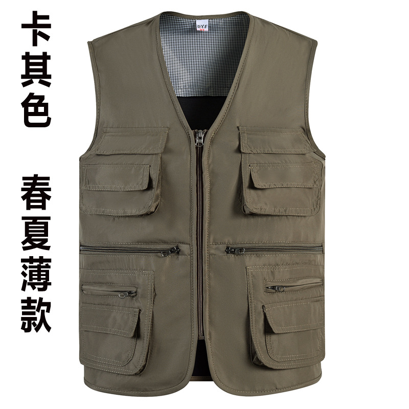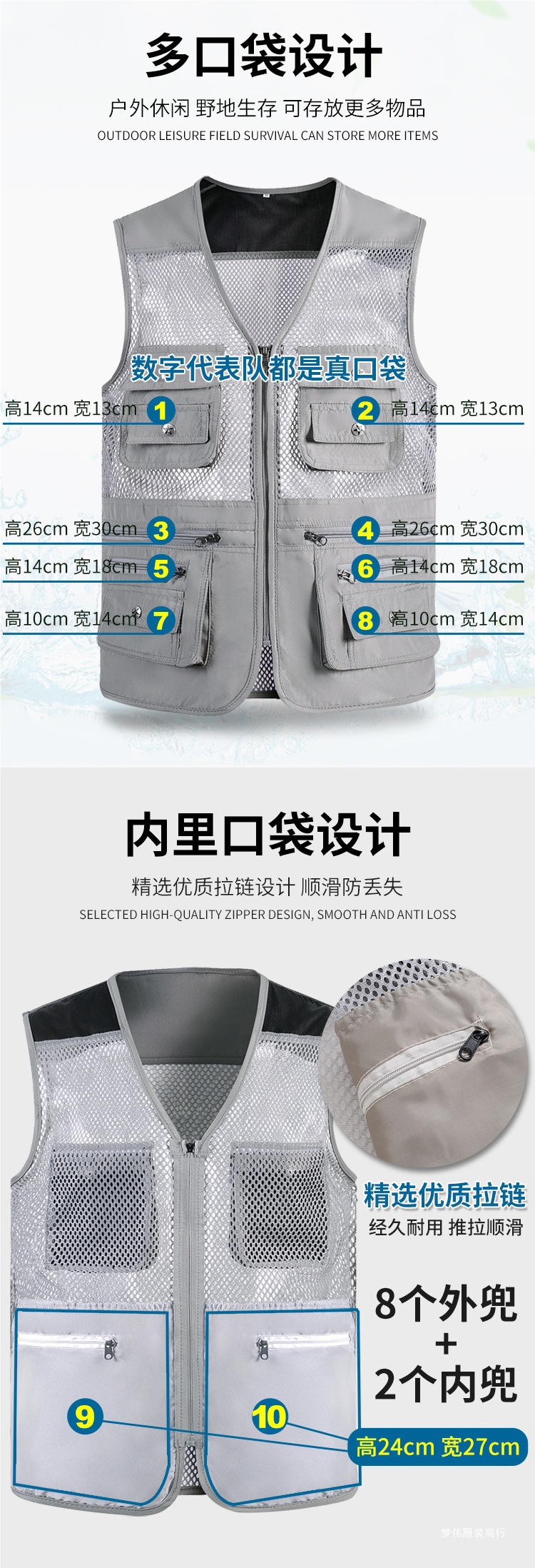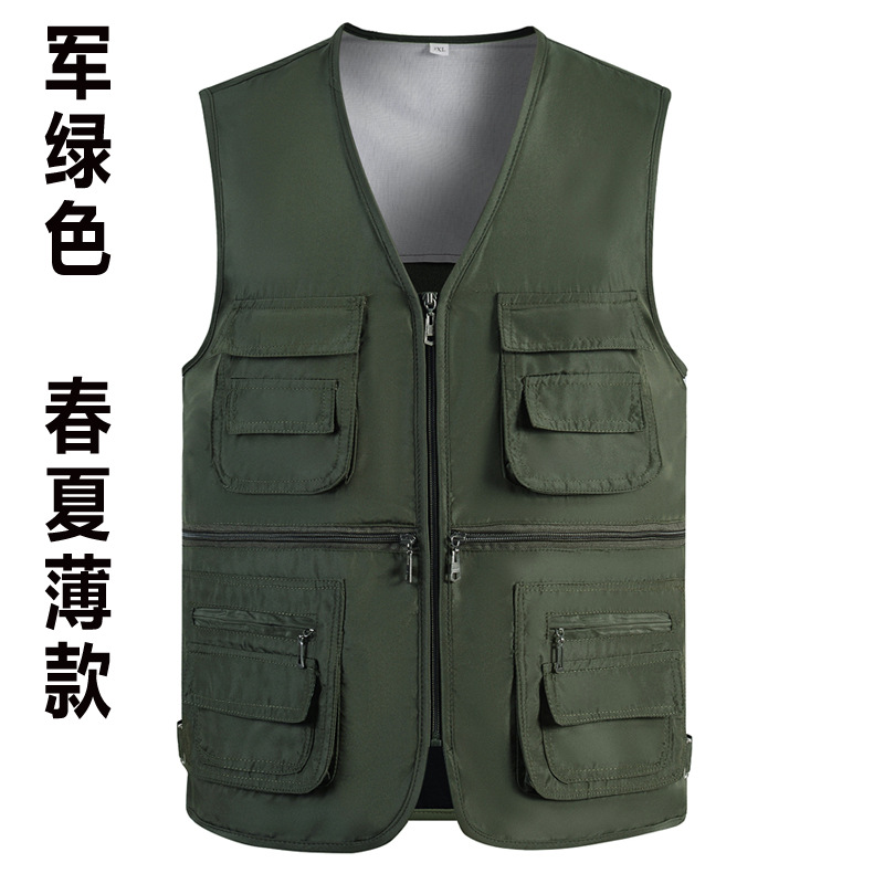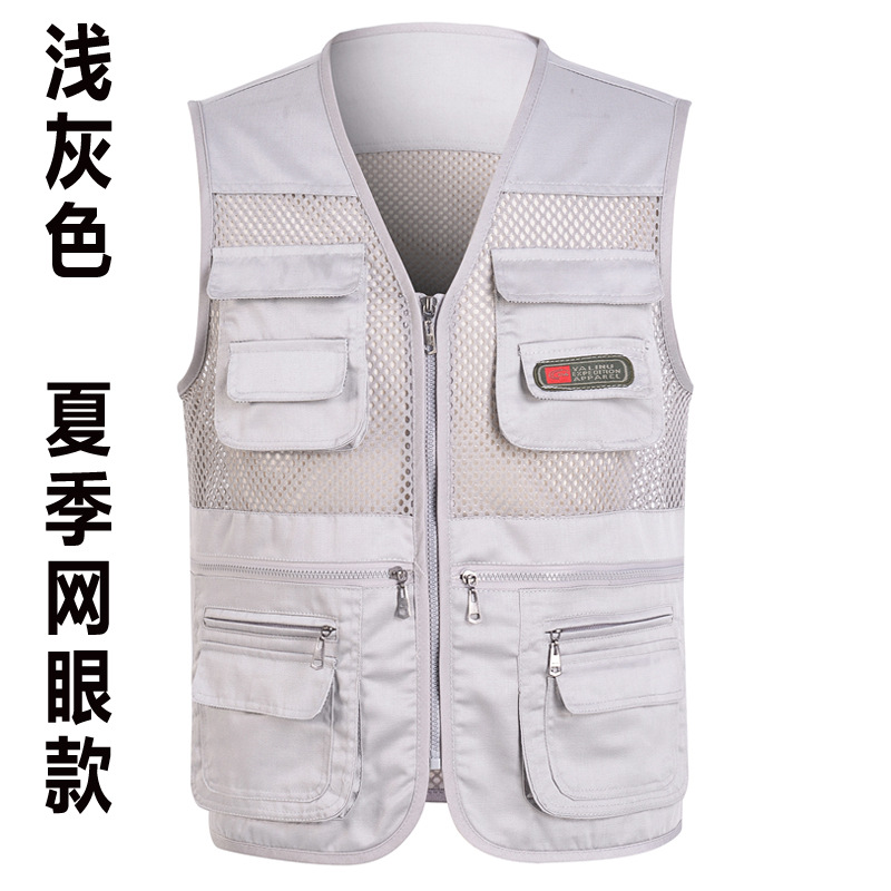 여름 얇은 메쉬 조끼 등산 빠른 건조 캐주얼 멀티 포켓 중년 남성 사진 낚시 V 넥 플러스 사이즈스토어 가기