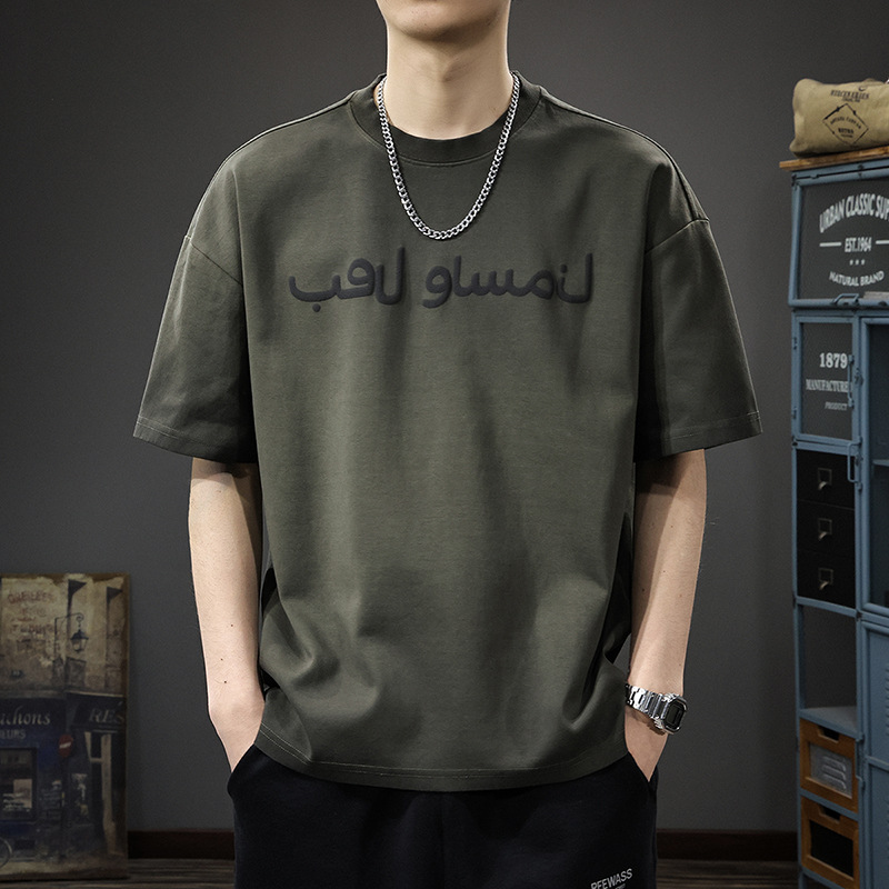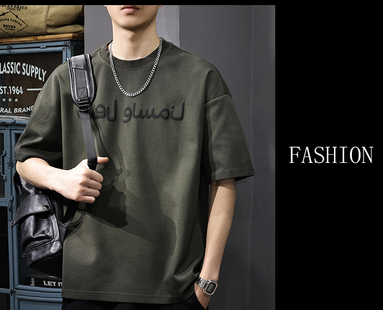 여름 새로운 빈티지 프린트 반팔 티셔츠 남성용 미국 캐주얼 헤비 세탁 느슨한 반소매 티셔츠 탑 트렌디스토어 가기