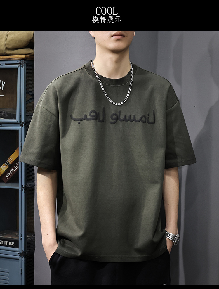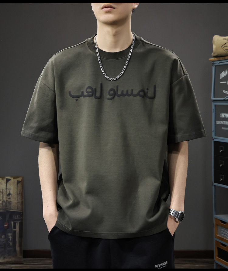 여름 새로운 빈티지 프린트 반팔 티셔츠 남성용 미국 캐주얼 헤비 세탁 느슨한 반소매 티셔츠 탑 트렌디