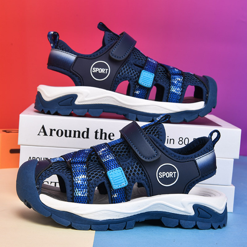 Baotou 샌들 중공 부드러운 바닥 벨크로 소년과 소녀 신발 해변 경량 통기성 러닝 캐주얼 스포츠 샌들스토어 가기