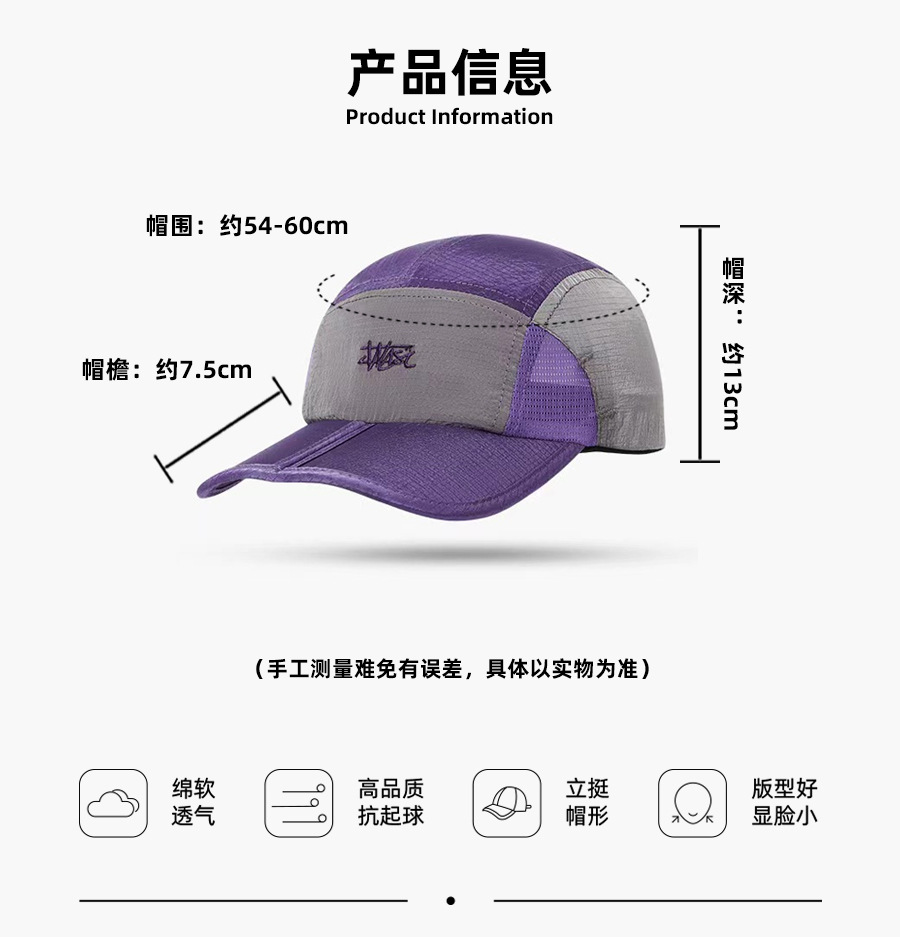 여름 일본 시리즈 얇은 빠른 건조 야구 모자 틈새 컬러 블록 오리 혀 모자 등산 캡 통기성 경량 스포츠 캡스토어 가기