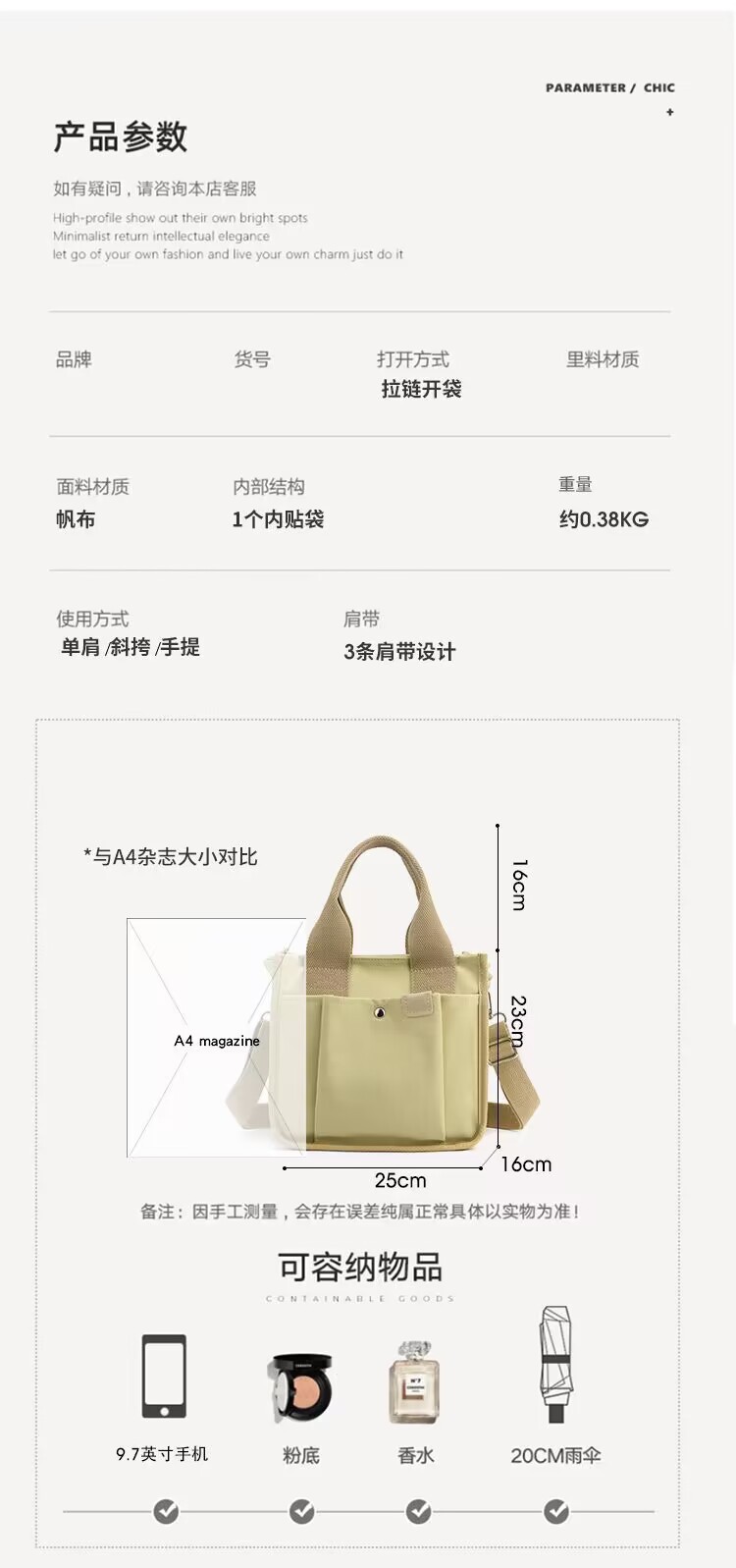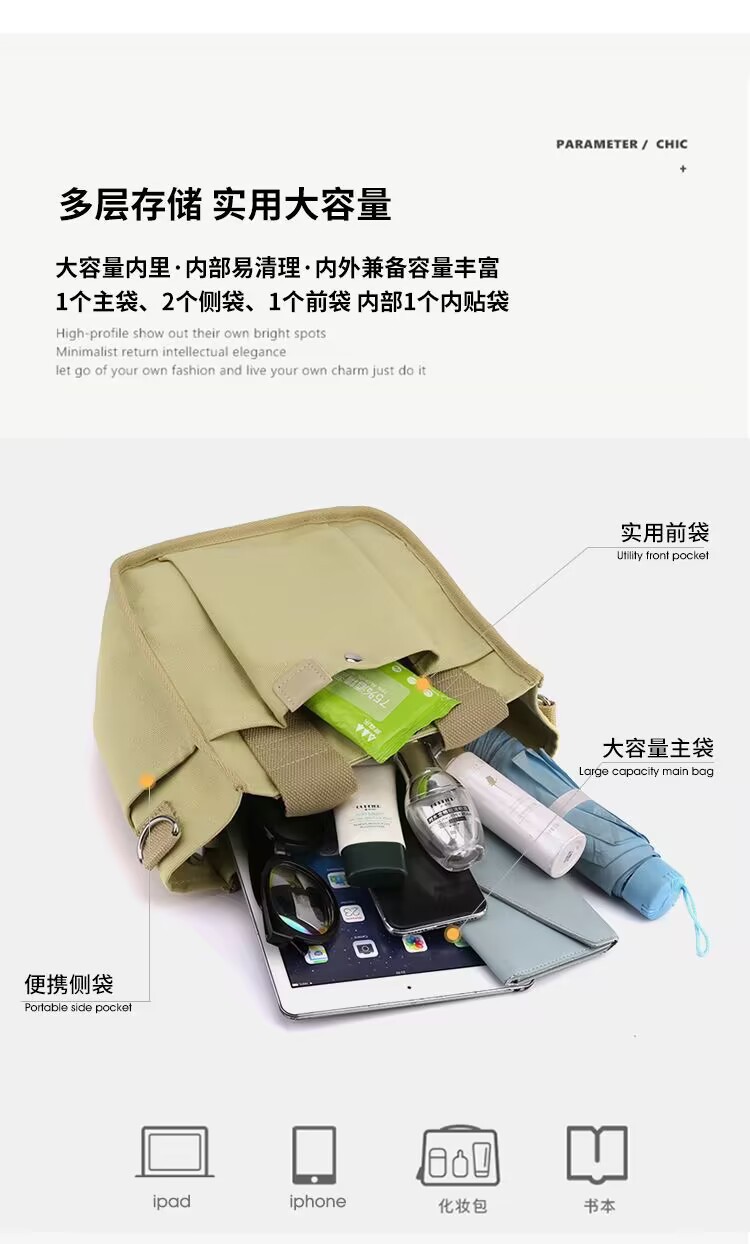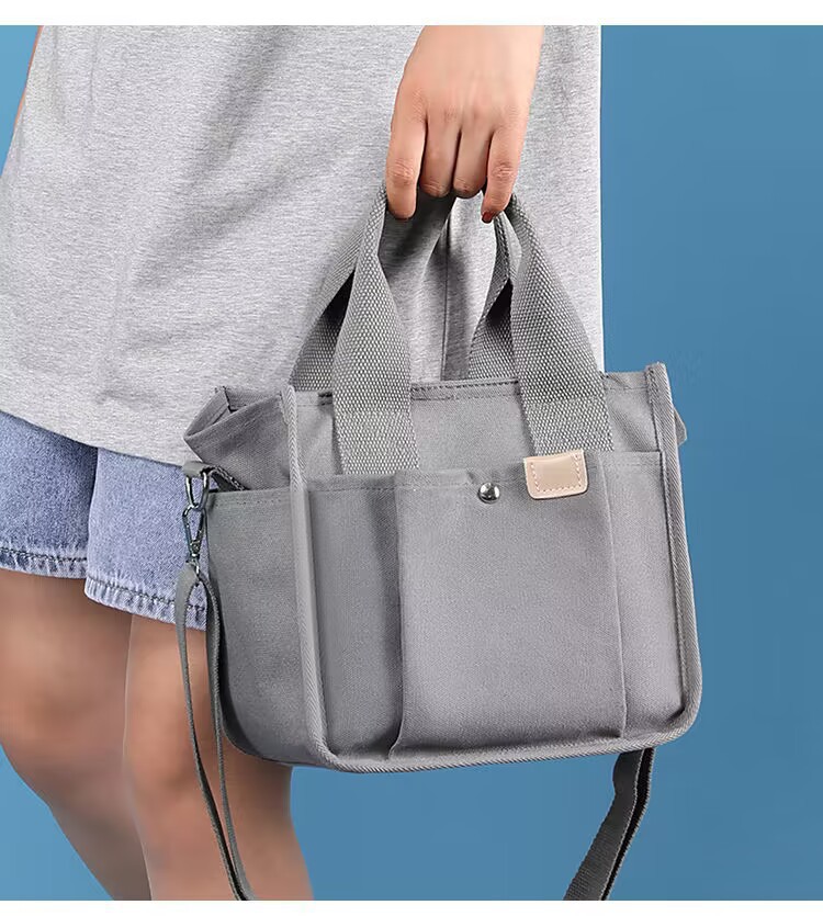 캔버스 가방 여성 대용량 점심 가방 핸드백 사무실 근로자 도시락 가방 멀티 컴 컴 파트먼트 포켓 숄더 백 미라백