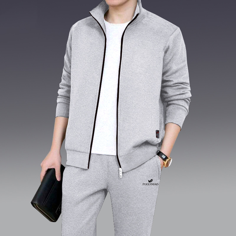 남성 스포츠 정장 크로스보더 봄, 가을 투피스 카디건 캐주얼 스포츠 정장 청소년 상의와 바지스토어 가기
