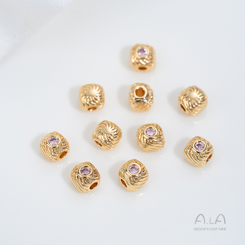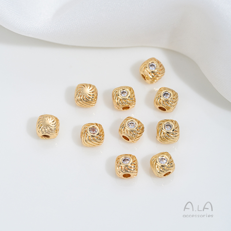 다채로운 지르콘 스레드 사각형 구슬로 상감 된 14K 패키지 진짜 금 액세서리 스루 홀 비즈 diy 팔찌 쥬얼리 재료스토어 가기