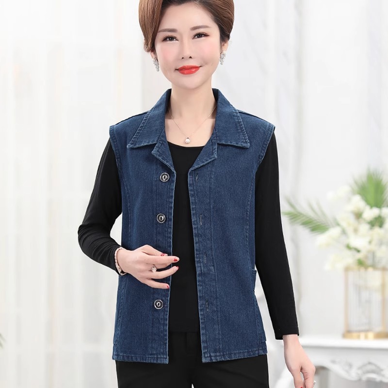 어머니의 봄 조끼 재킷 새로운 데님 조끼 중년 및 노인 여성 의류 할머니의 가을 조끼