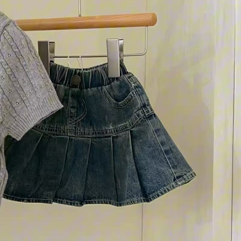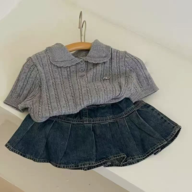 여자 여름 세트 새로운 한국 스타일 소녀 아기 소녀 샤넬 인형 칼라 스웨터 데님 스커트 500237스토어 가기