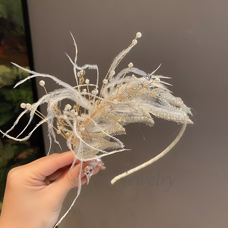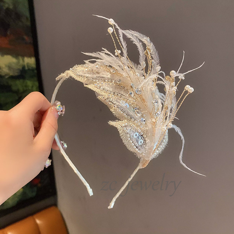 여자 깃털 요정 헤어 밴드 발레 댄스 헤드웨어 헤어 클립 어린이 피아노 구정 성능 플래시 다이아몬드 헤어 액세서리