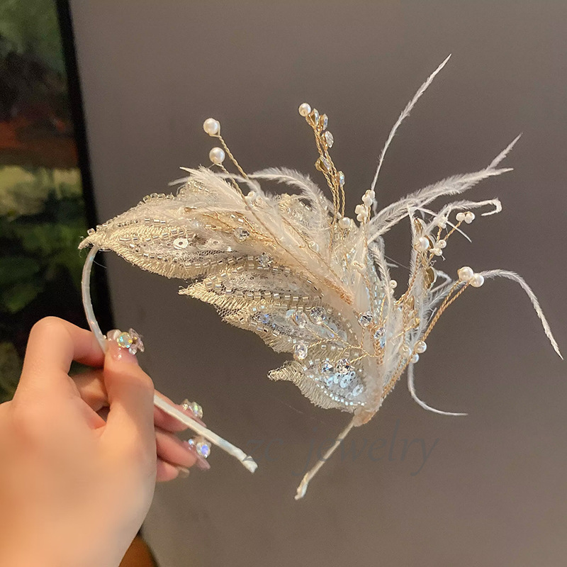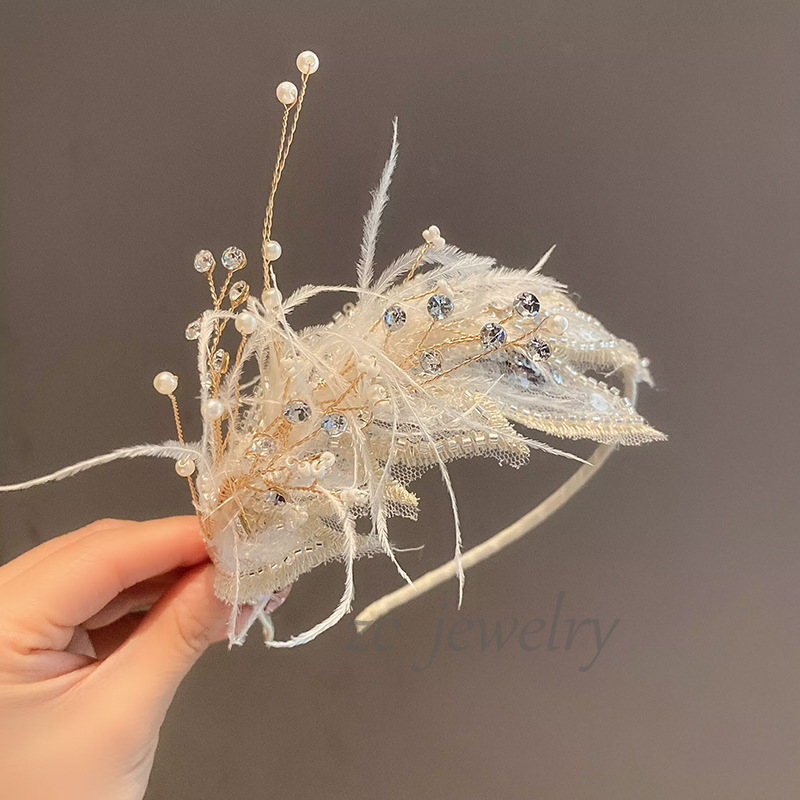 여자 깃털 요정 헤어 밴드 발레 댄스 헤드웨어 헤어 클립 어린이 피아노 구정 성능 플래시 다이아몬드 헤어 액세서리스토어 가기