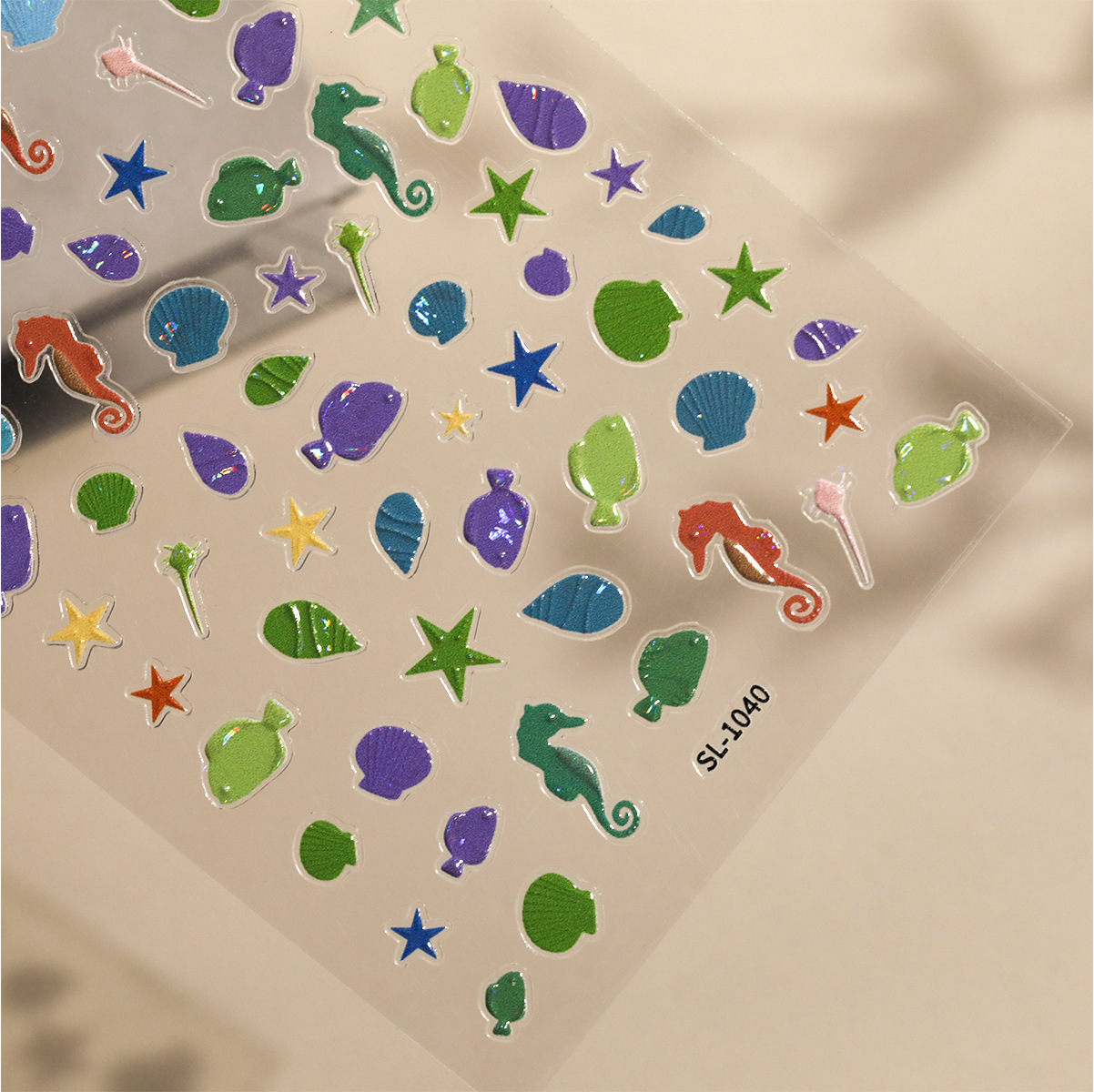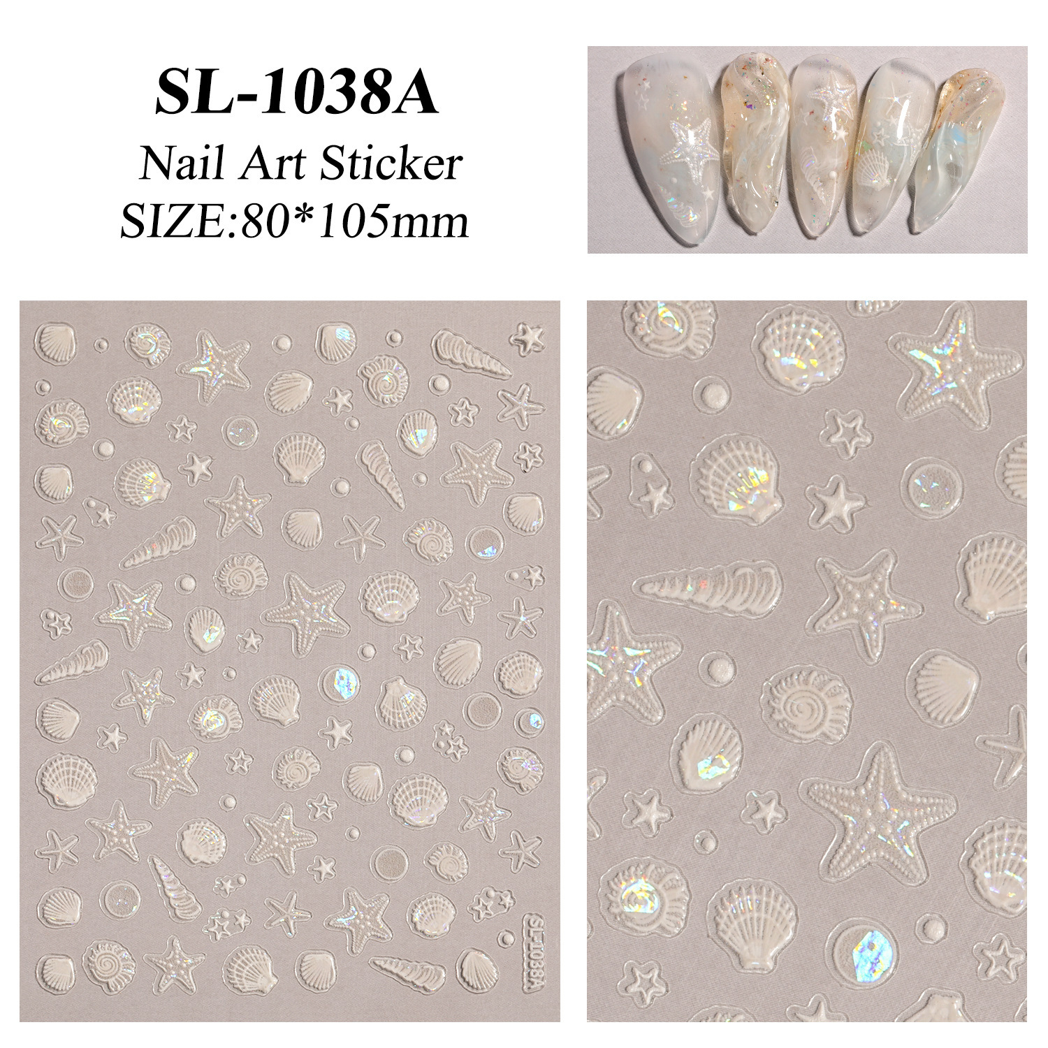 여름 바다 바람 네일 스티커 5D 양각 판타지 쉘 불가사리 해파리 네일 아트 스티커 보석 SL