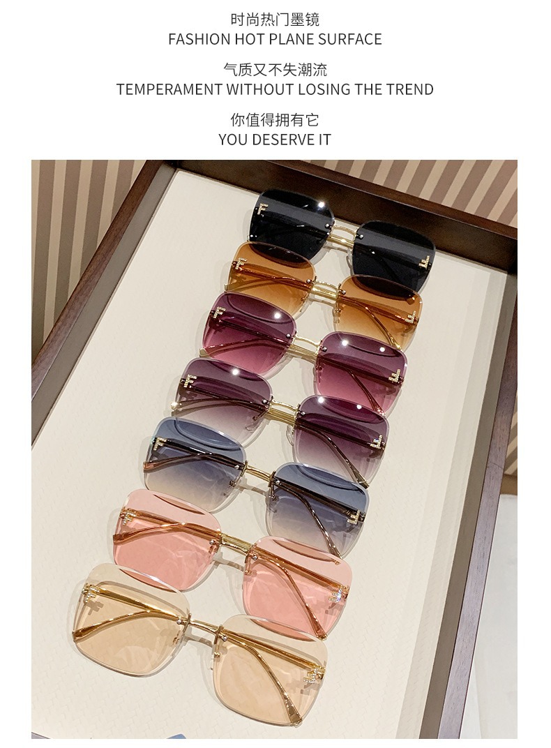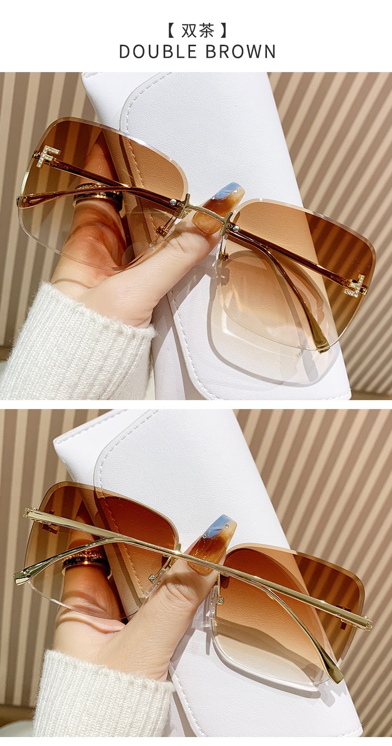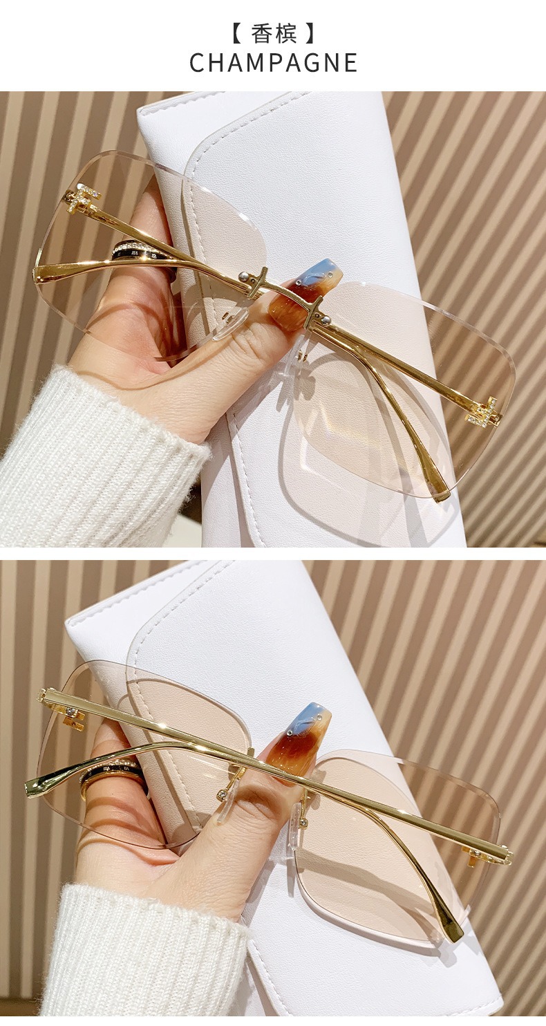 2025 국경 새로운 금속 대형 프레임 다이아몬드가 박힌 선글라스 유행 유럽과 미국의 편지 프레임리스 스퀘어 여성 선스크린 선글라스스토어 가기