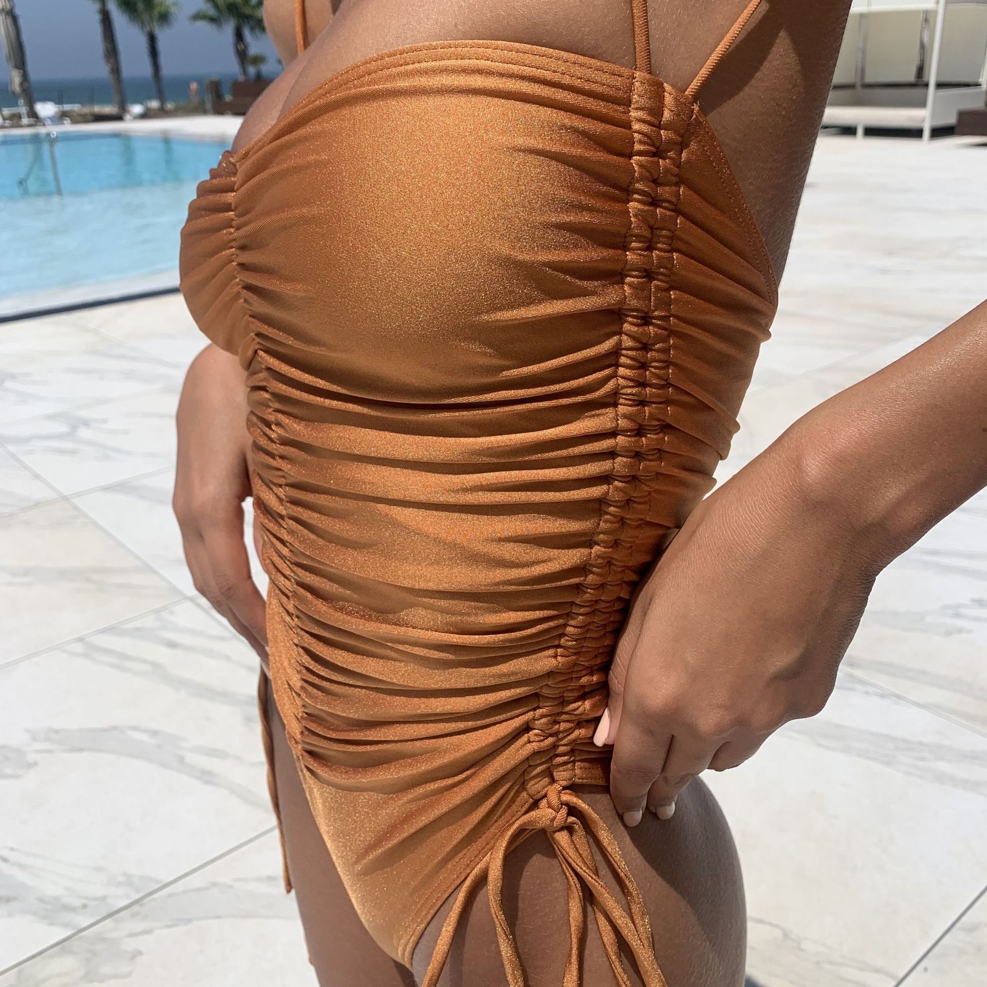 2025 유럽과 미국의 새로운 Drawstring 원피스 수영복 여성 솔리드 컬러 주름 섹시한 서스펜더 비키니 21059 10 색스토어 가기
