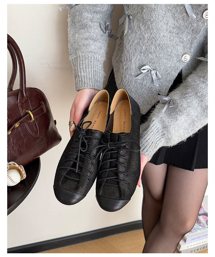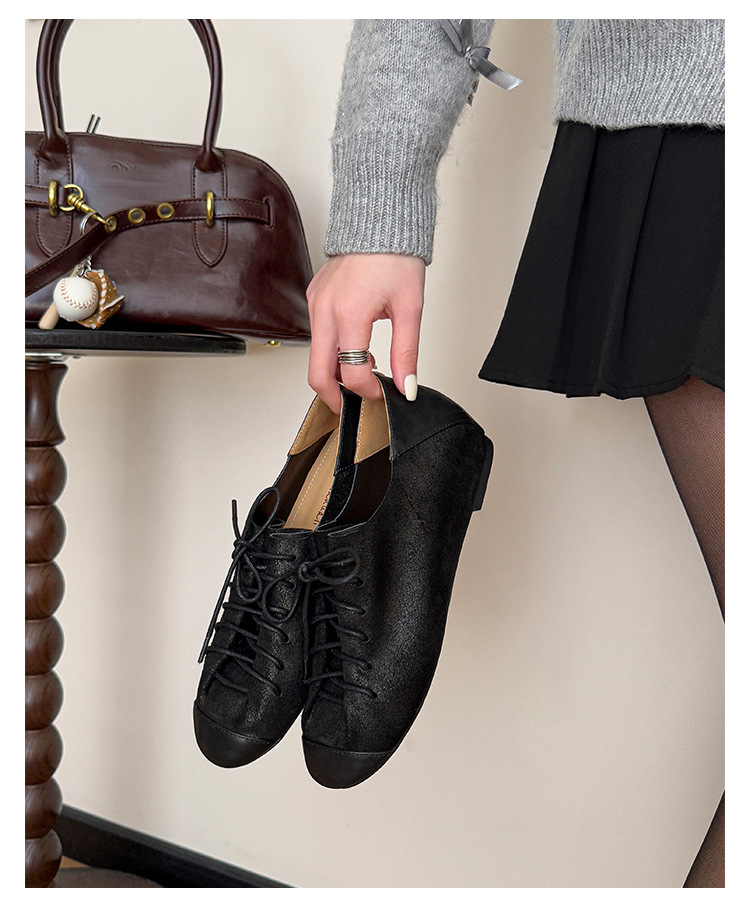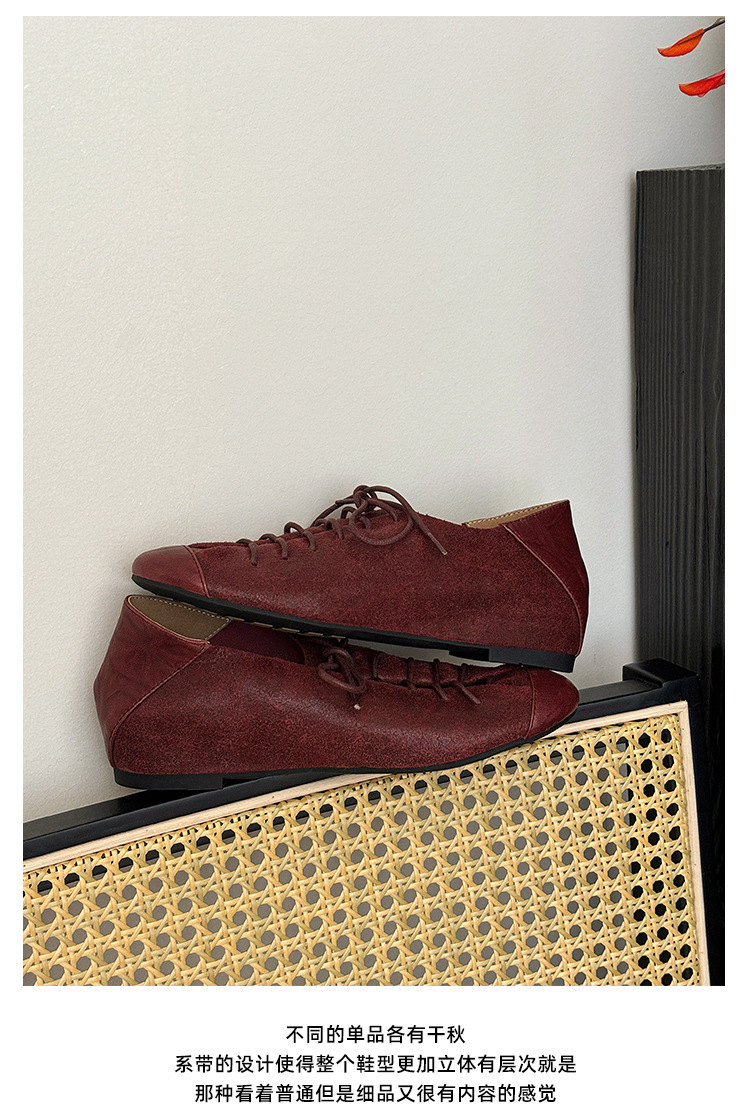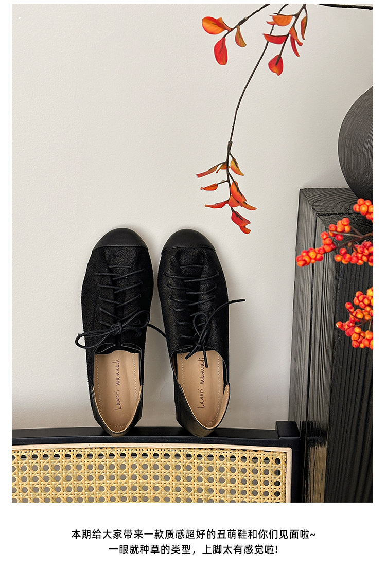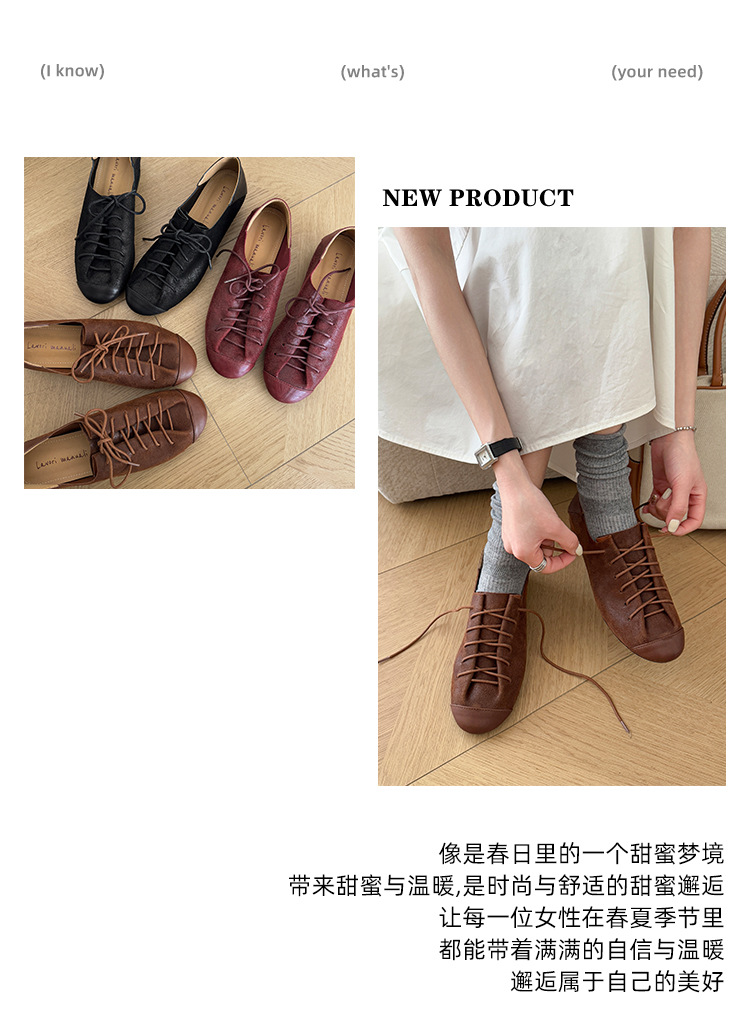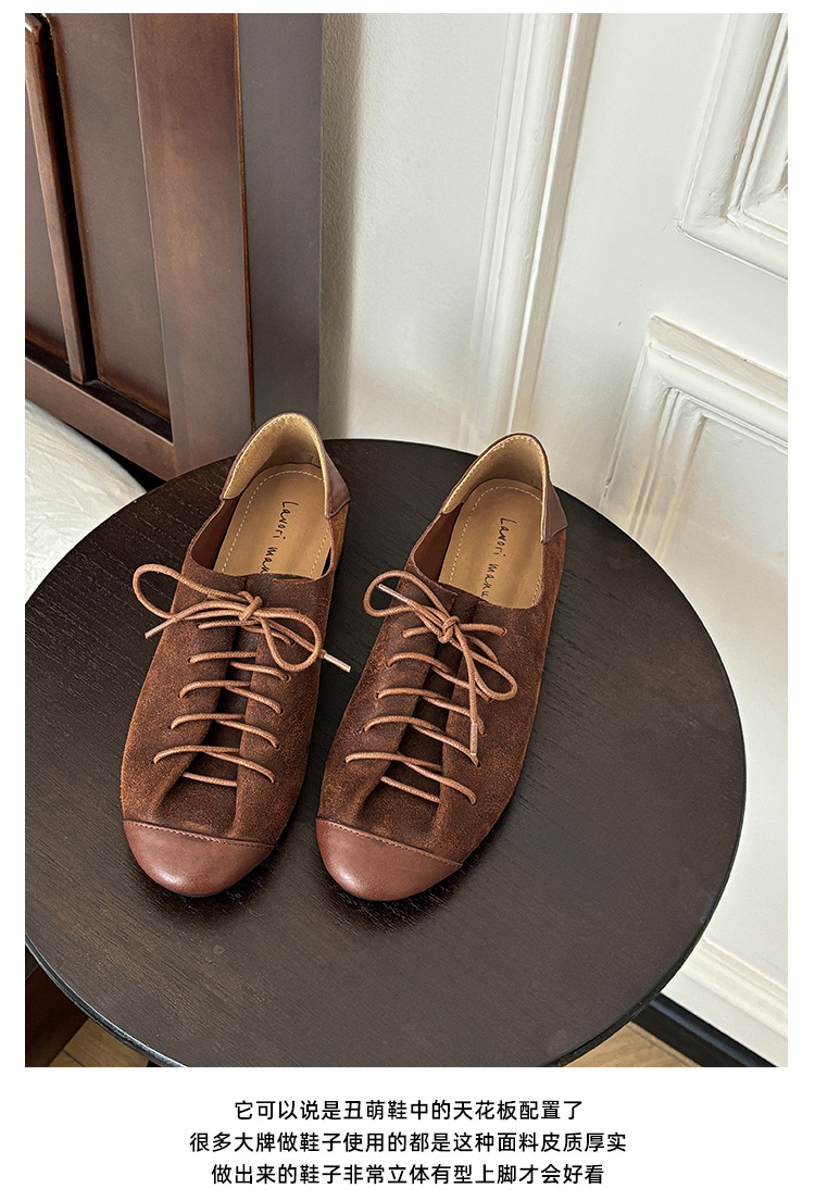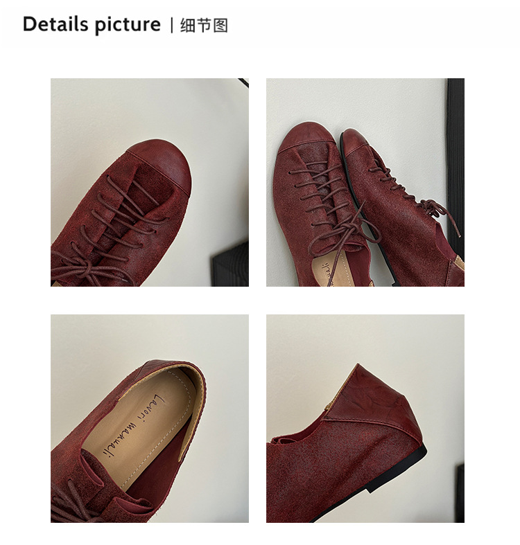소가죽 스퀘어 헤드의 첫 번째 레이어 프랑스 복고풍 스트랩 신발 여성의 새로운 작은 가죽 신발 부드러운 가죽 플랫 레이스 깊은 입 신발스토어 가기