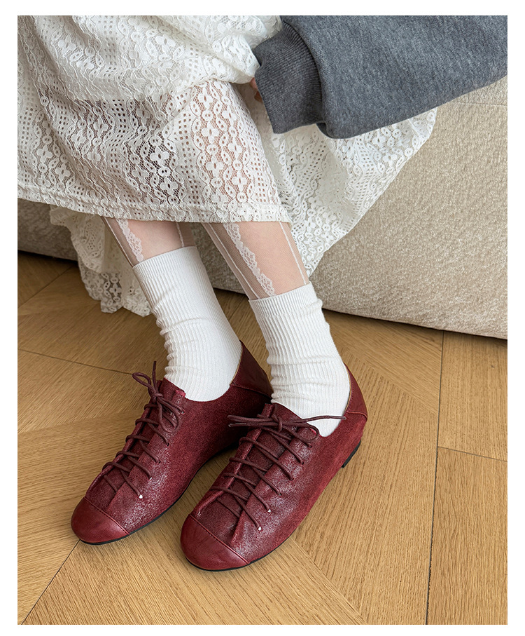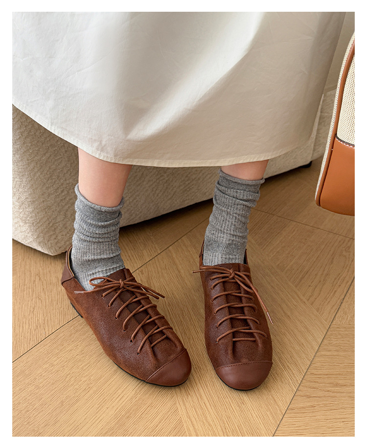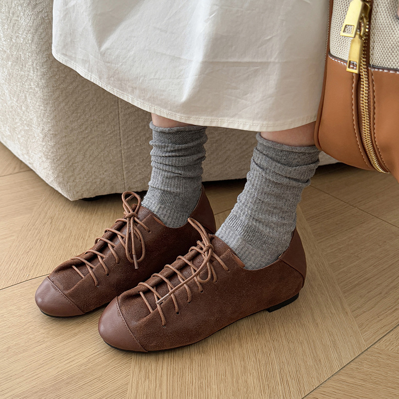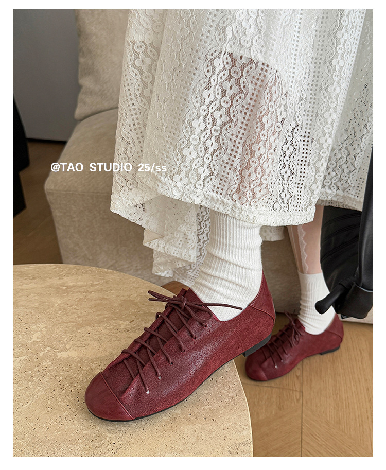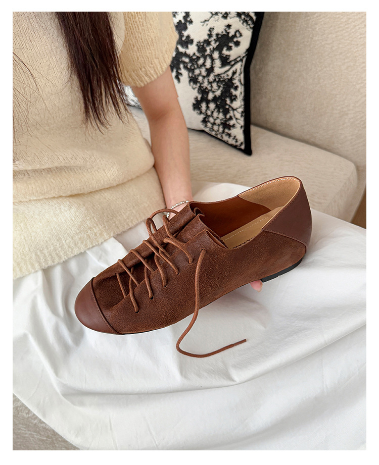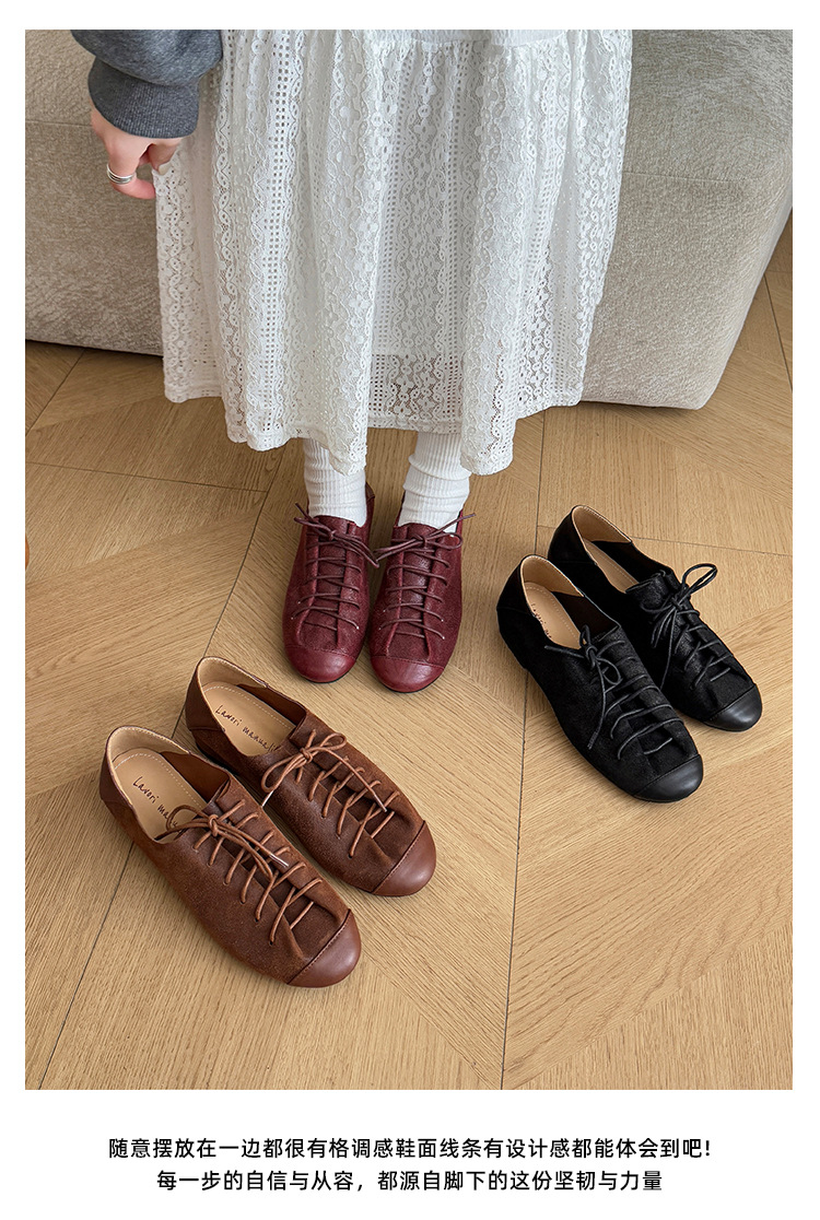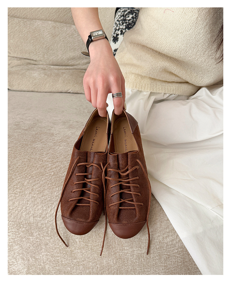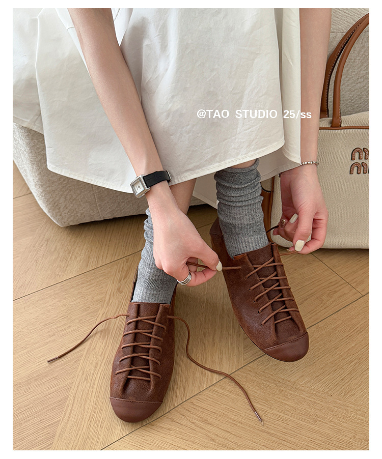 소가죽 스퀘어 헤드의 첫 번째 레이어 프랑스 복고풍 스트랩 신발 여성의 새로운 작은 가죽 신발 부드러운 가죽 플랫 레이스 깊은 입 신발스토어 가기