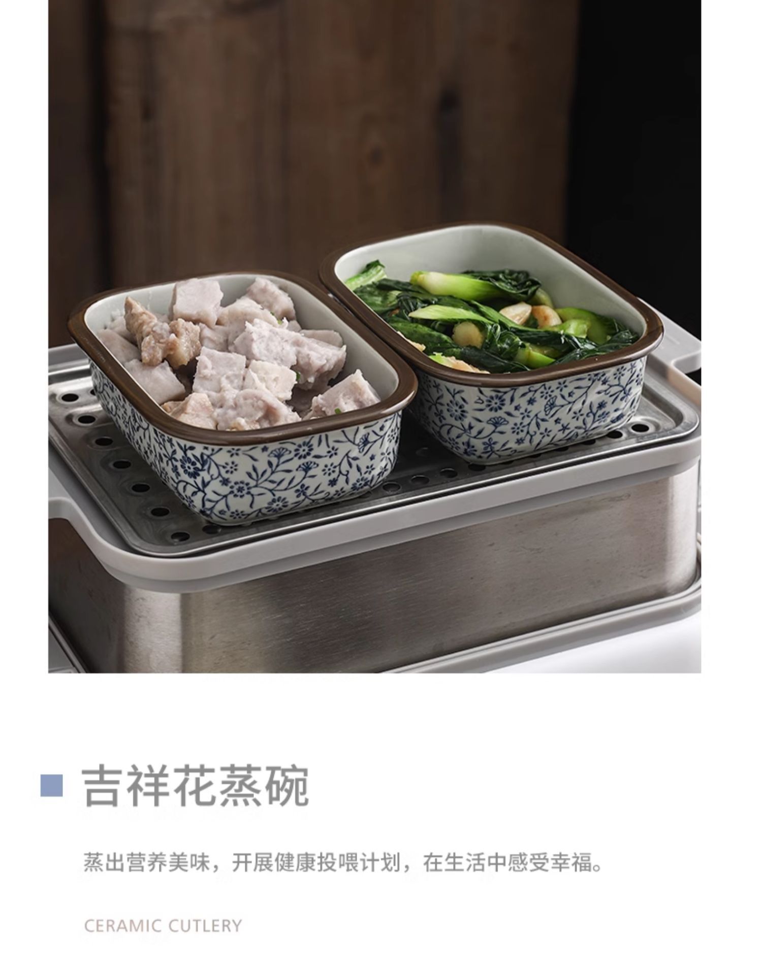 유약 세라믹 찜 그릇 직사각형 전기 찜 그릇 가정용 찜 밥 중국 도시락 찜 오븐 접시스토어 가기