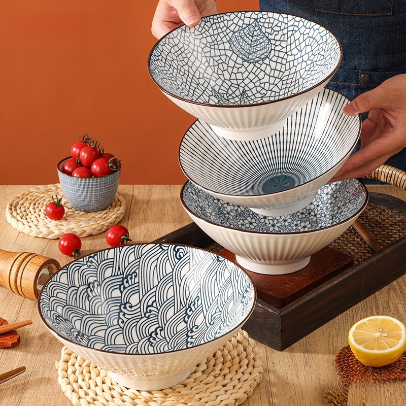 일본 국수 그릇 가정용 대형 그릇 트럼펫 그릇 세라믹 콘 그릇라면 그릇 국수 그릇 식기 세트