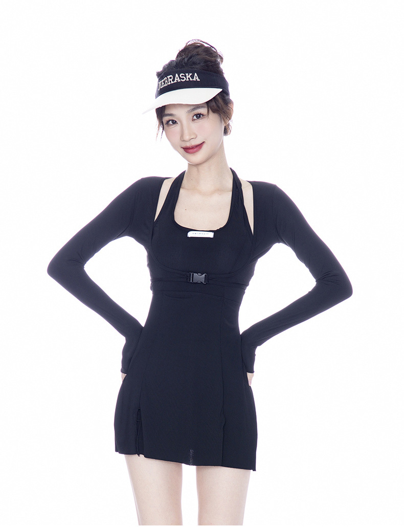 여성용 수영복, 원피스 긴팔 스커트 3피스 세트, 보수적인 배 커버, 슬리밍, 가슴 지지, 푸쉬업, 온천 핫걸 의상