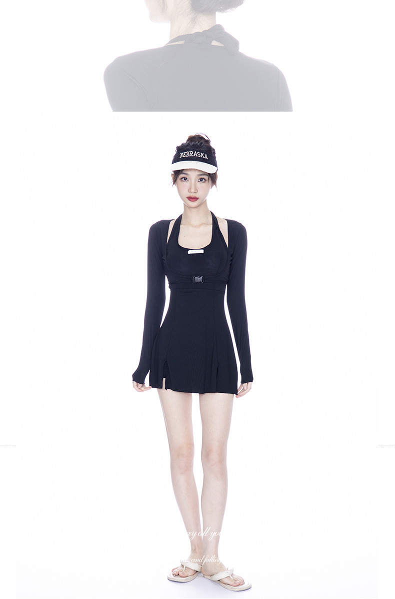 여성용 수영복, 원피스 긴팔 스커트 3피스 세트, 보수적인 배 커버, 슬리밍, 가슴 지지, 푸쉬업, 온천 핫걸 의상스토어 가기