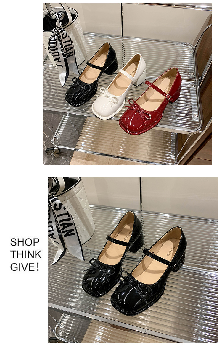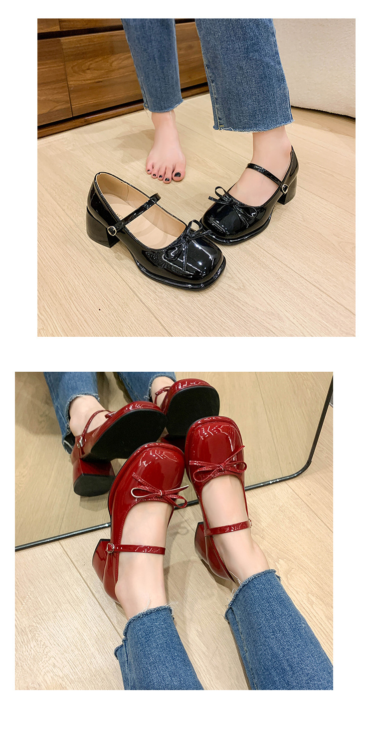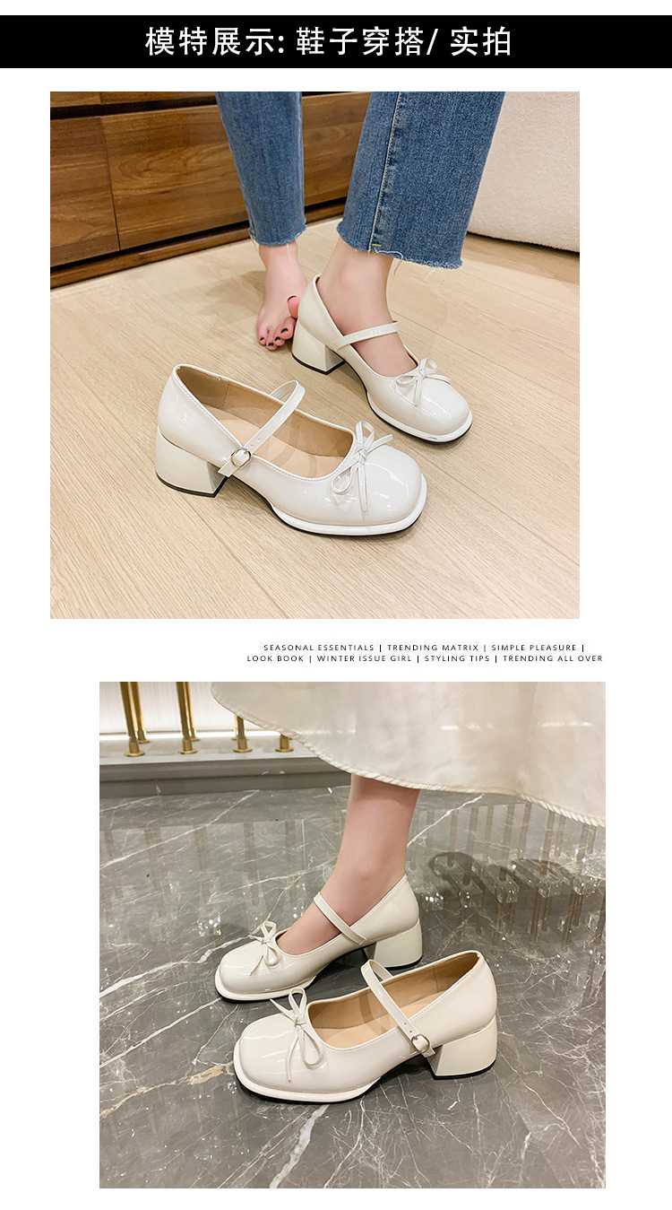 프랑스 고급 활 두꺼운 발 사각 발가락 메리 제인 신발 2025 새로운 스타일 붉은 요정 스타일 싱글 레이어 신발 치마스토어 가기