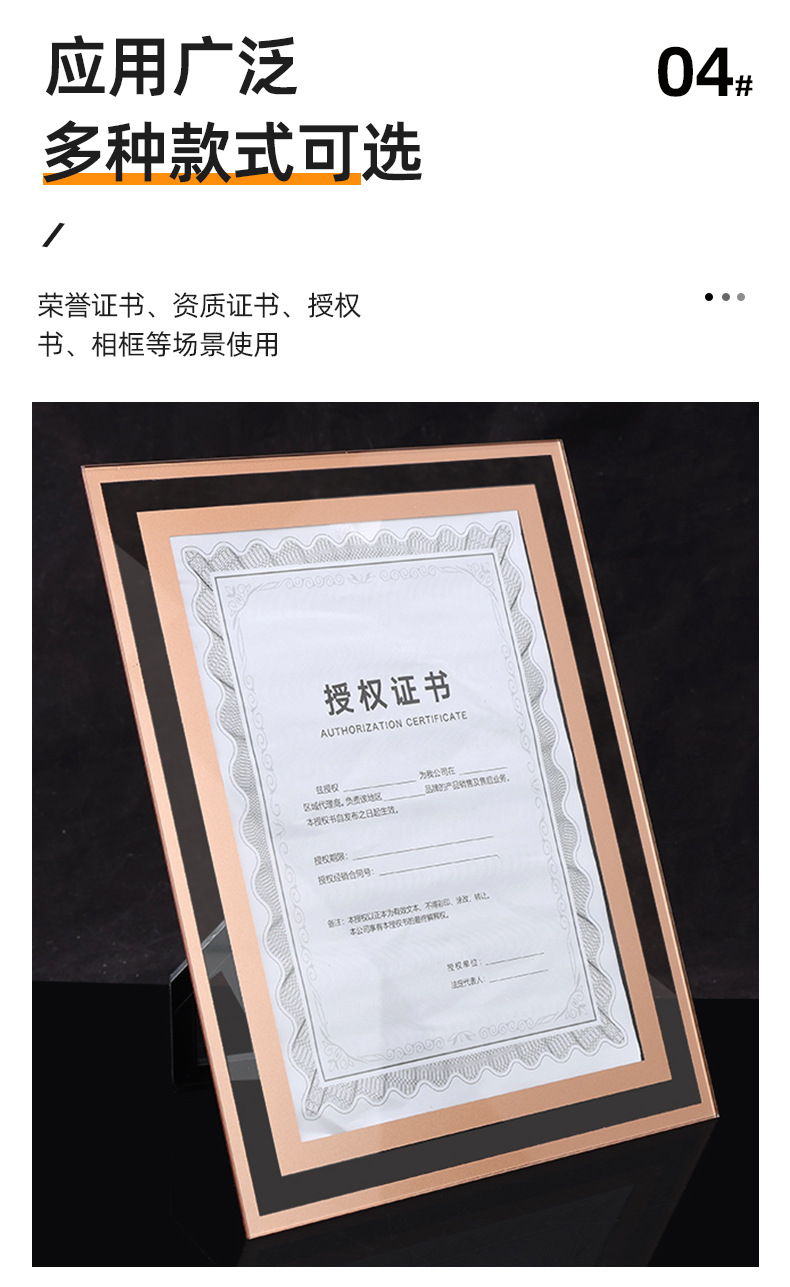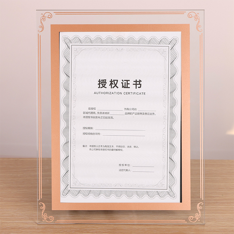 연구 크리스탈 유리 현대 간단한 명예 인증서 브랜드 식당 거실 사진 프레임 인증서