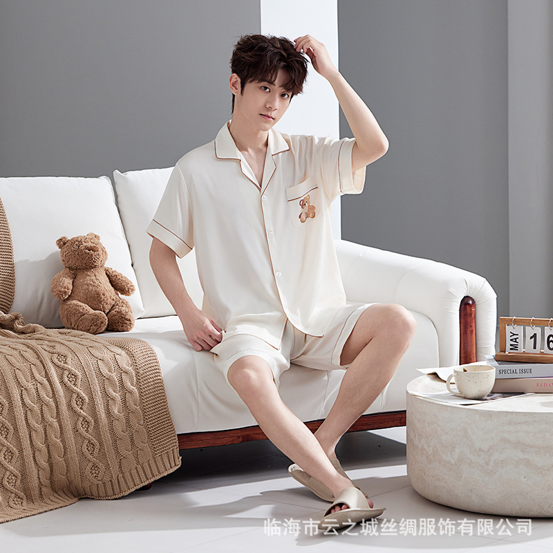 새로운 커플 잠옷 여름 홈웨어 반팔 반바지 얼음 실크 잠옷 세대스토어 가기