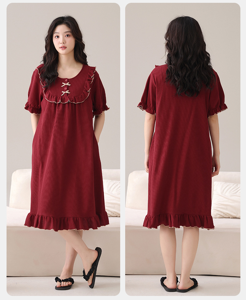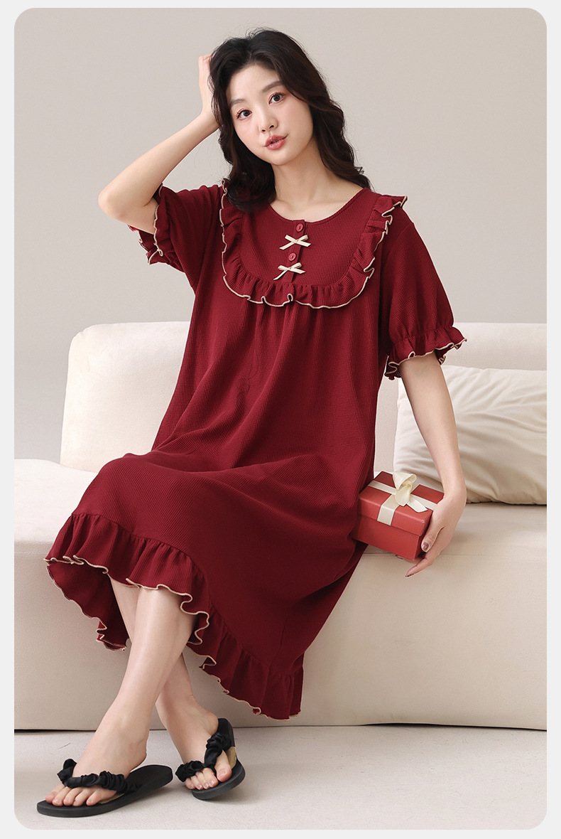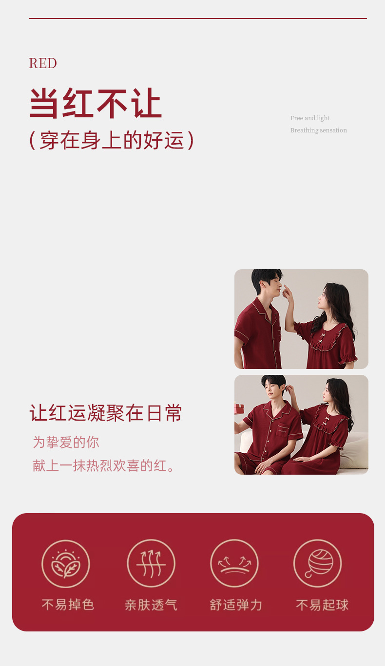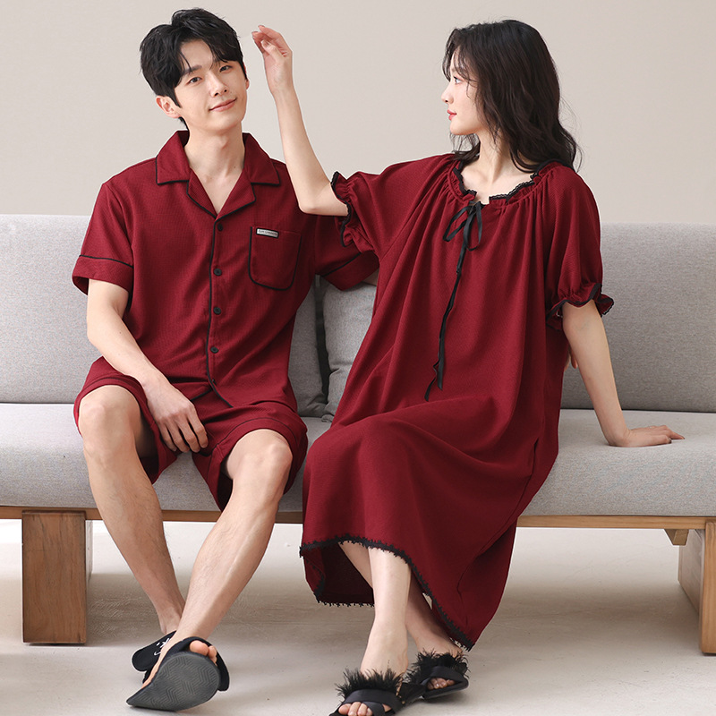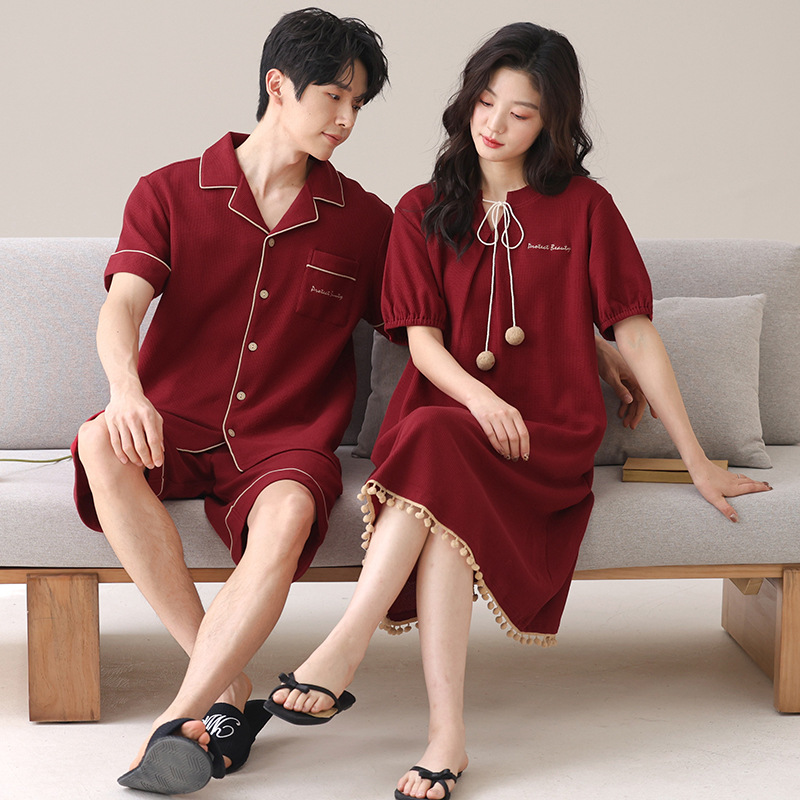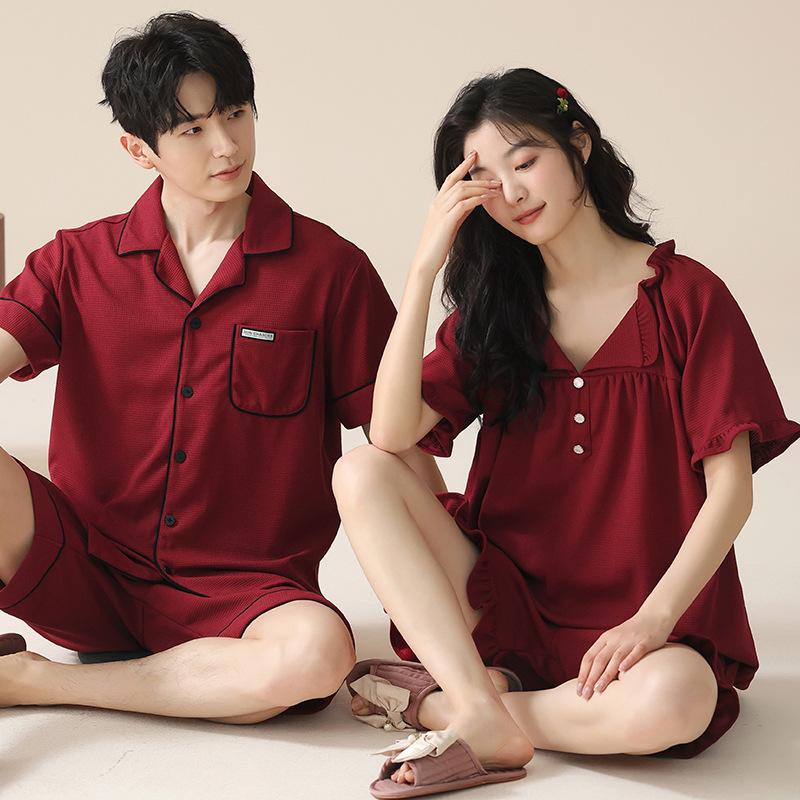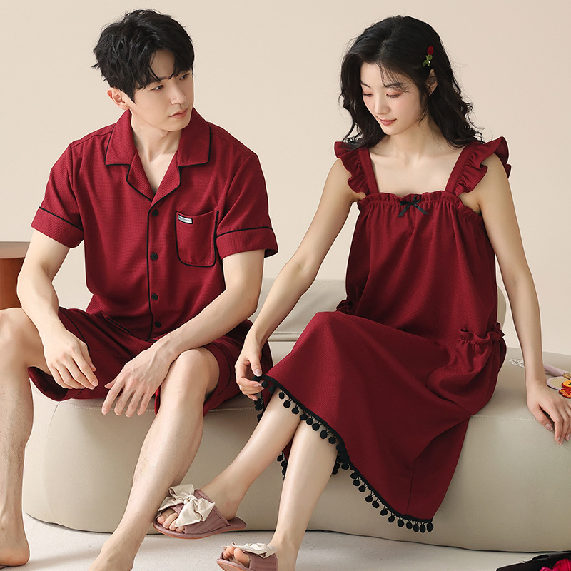 2025 새로운 커플 잠옷 순면 여름 신혼 남성 반팔 세트 레드 여성의 나이트 드레스 웨딩 홈 의류스토어 가기