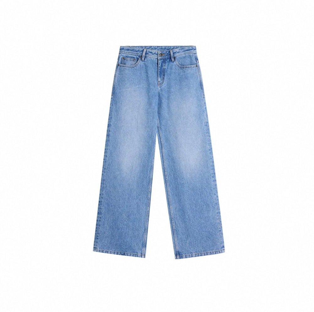 여성용 레트로 라이트 블루 코튼 워싱 디스트레스드 미드 로우 웨이스트 루즈 스트레이트 청바지스토어 가기