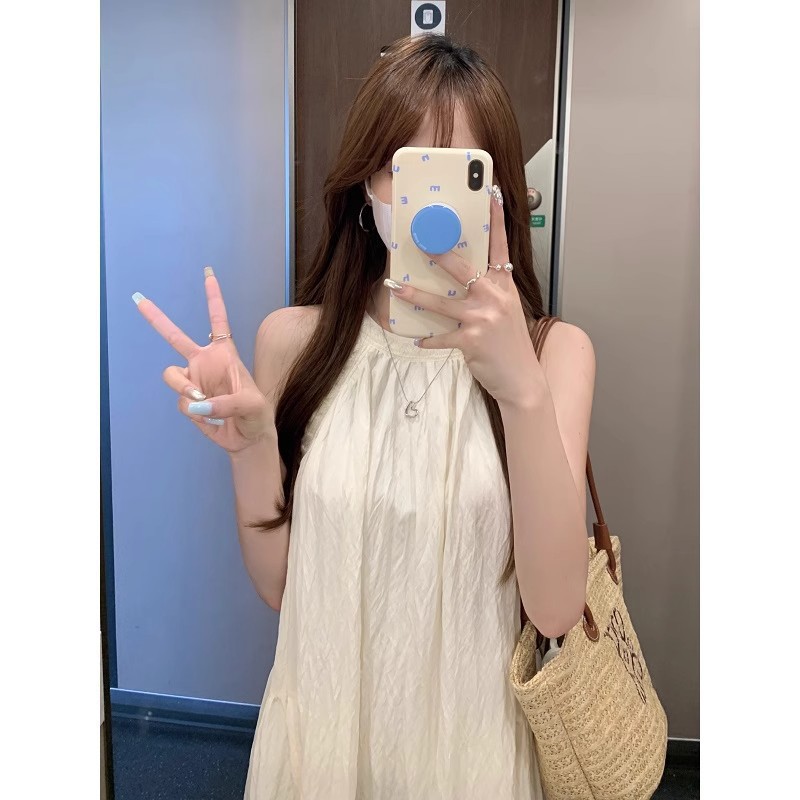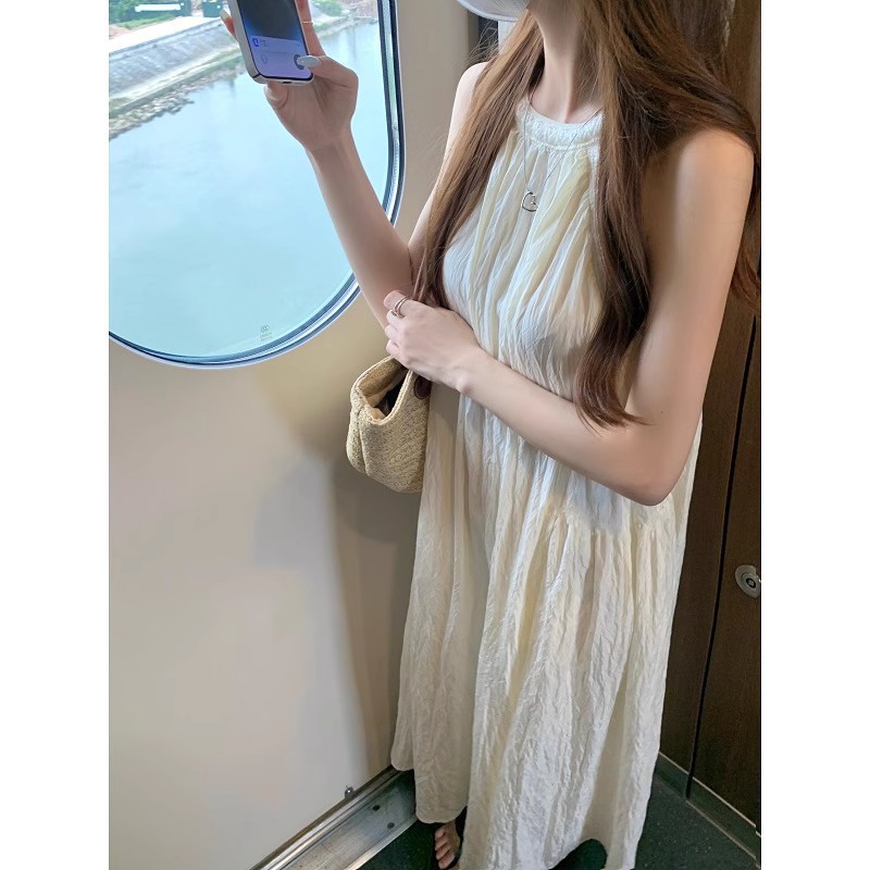 2025 여름 새 휴가 스타일 목에 매달린 원피스 여성용 느슨한 니퍼 요정 원피스 스키니와 작은 오프 숄더 롱 원피스스토어 가기