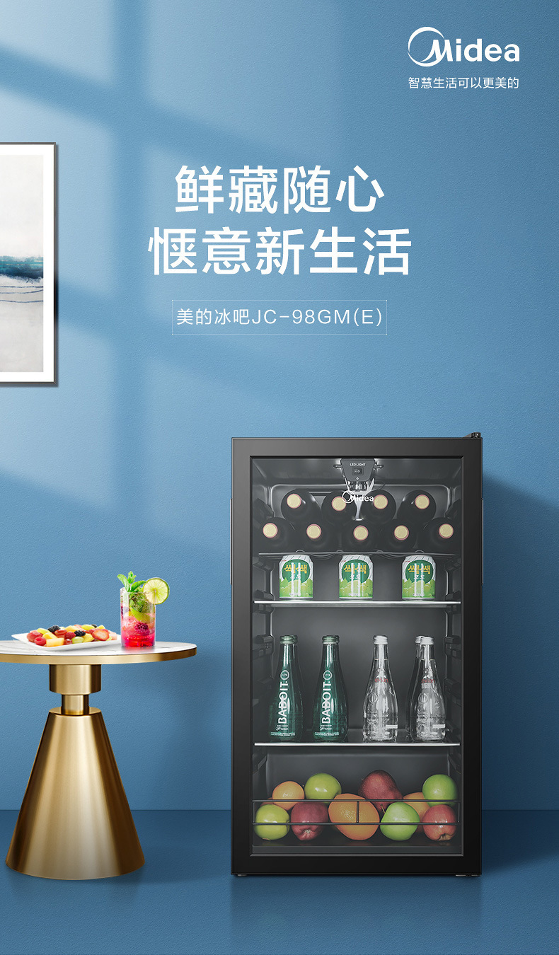 Midea JC-98GM (E) 가정용 신선 유지 레드 와인 캐비닛 아이스 바 냉장 시가 와인 캐비닛 유리 냉동고 음료 냉장고스토어 가기