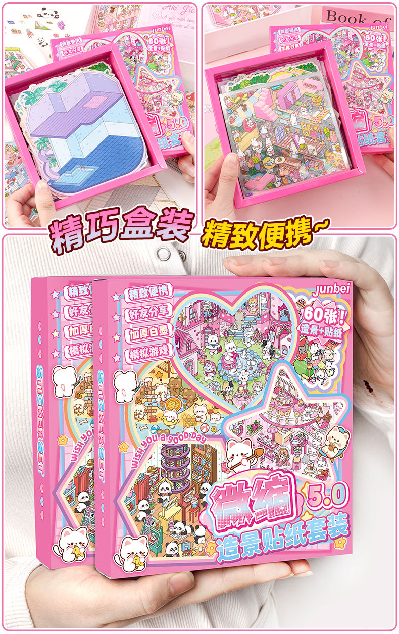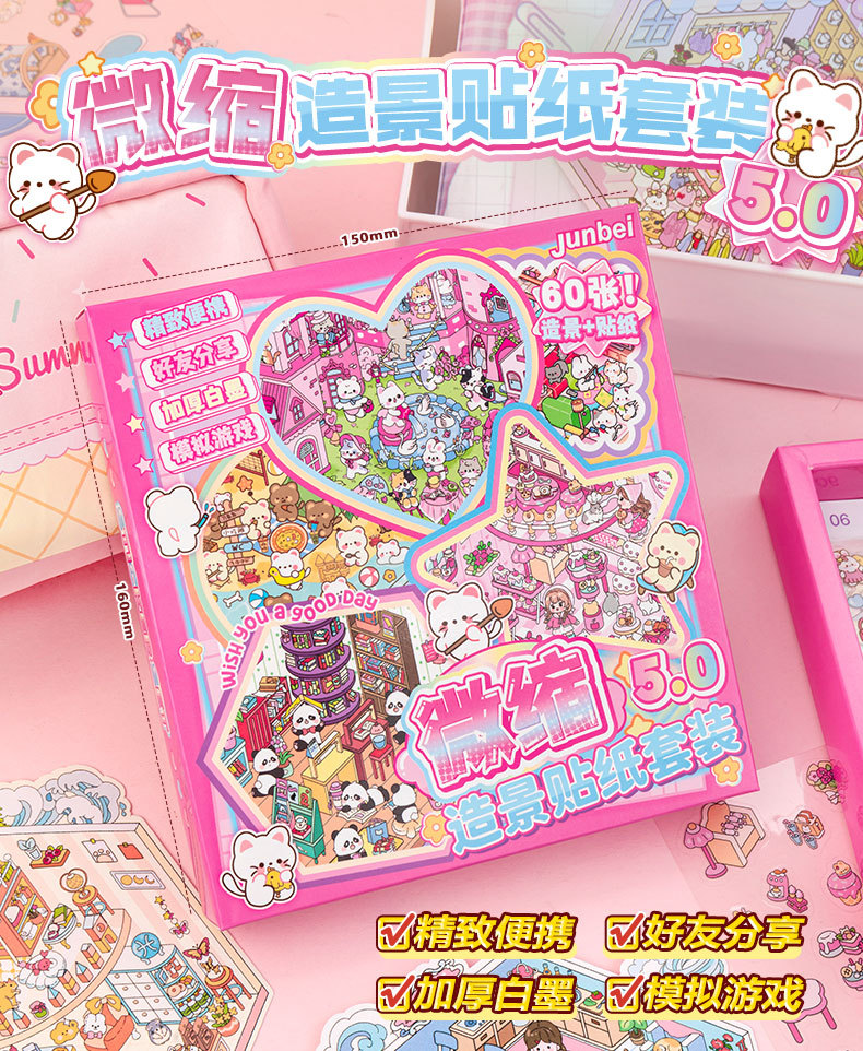 미니어처 조경 스티커 세트 3d 스테레오 장면 손 계정 스티커는이 학생 DIY 수동 다이 컷 스티커 책을 설정스토어 가기