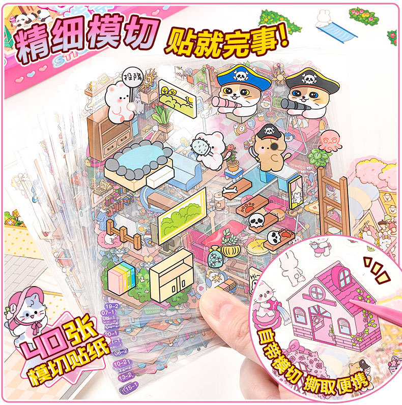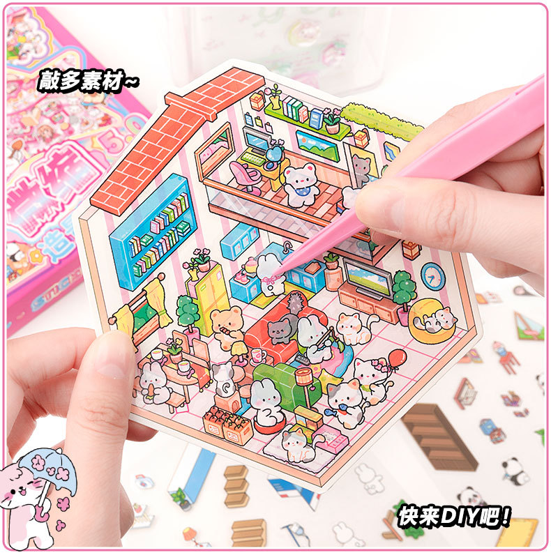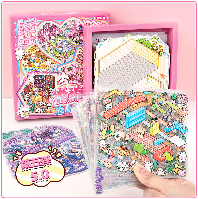 미니어처 조경 스티커 세트 3d 스테레오 장면 손 계정 스티커는이 학생 DIY 수동 다이 컷 스티커 책을 설정
