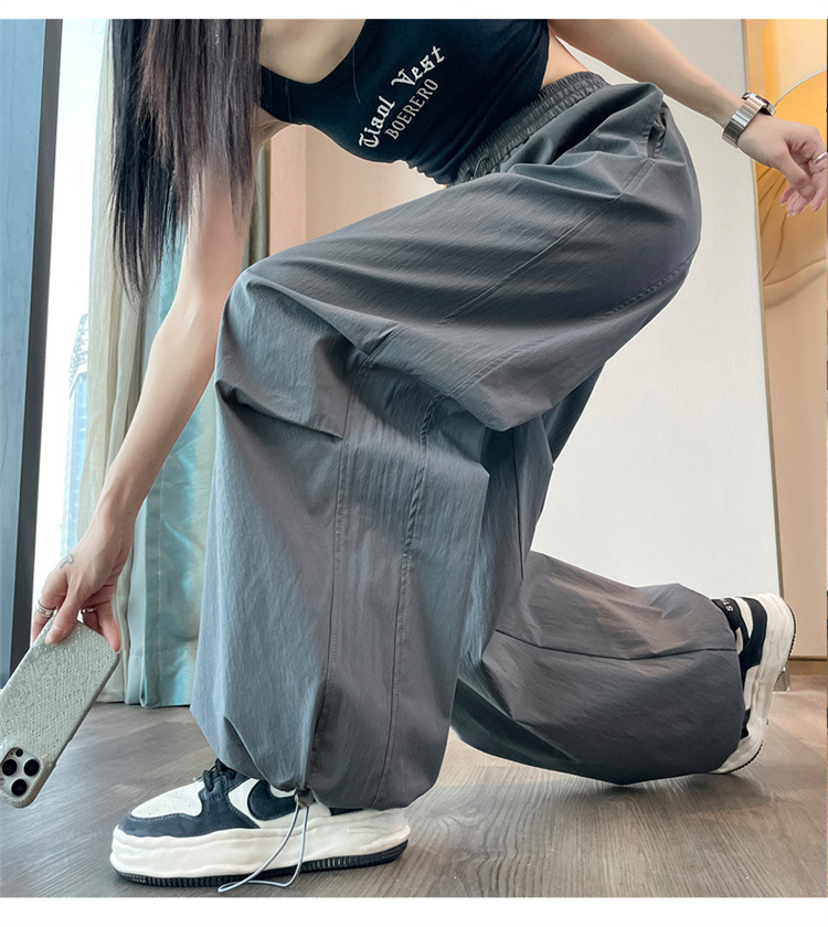 화이트 아이스 실크 빠른 건조 작업복 여성 여름 얇은 높은 허리 느슨한 충전 바지 다리 발가락 캐주얼 낙하산 바지