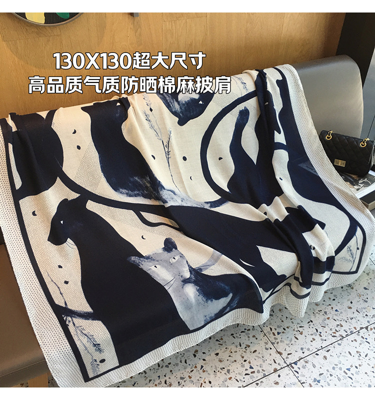 면화와 리넨 여행 선스크린 에어컨 목도리 여자 2025 새로운 여름 스카프 여자의 하이 엔드 얇은 대형 광장스토어 가기
