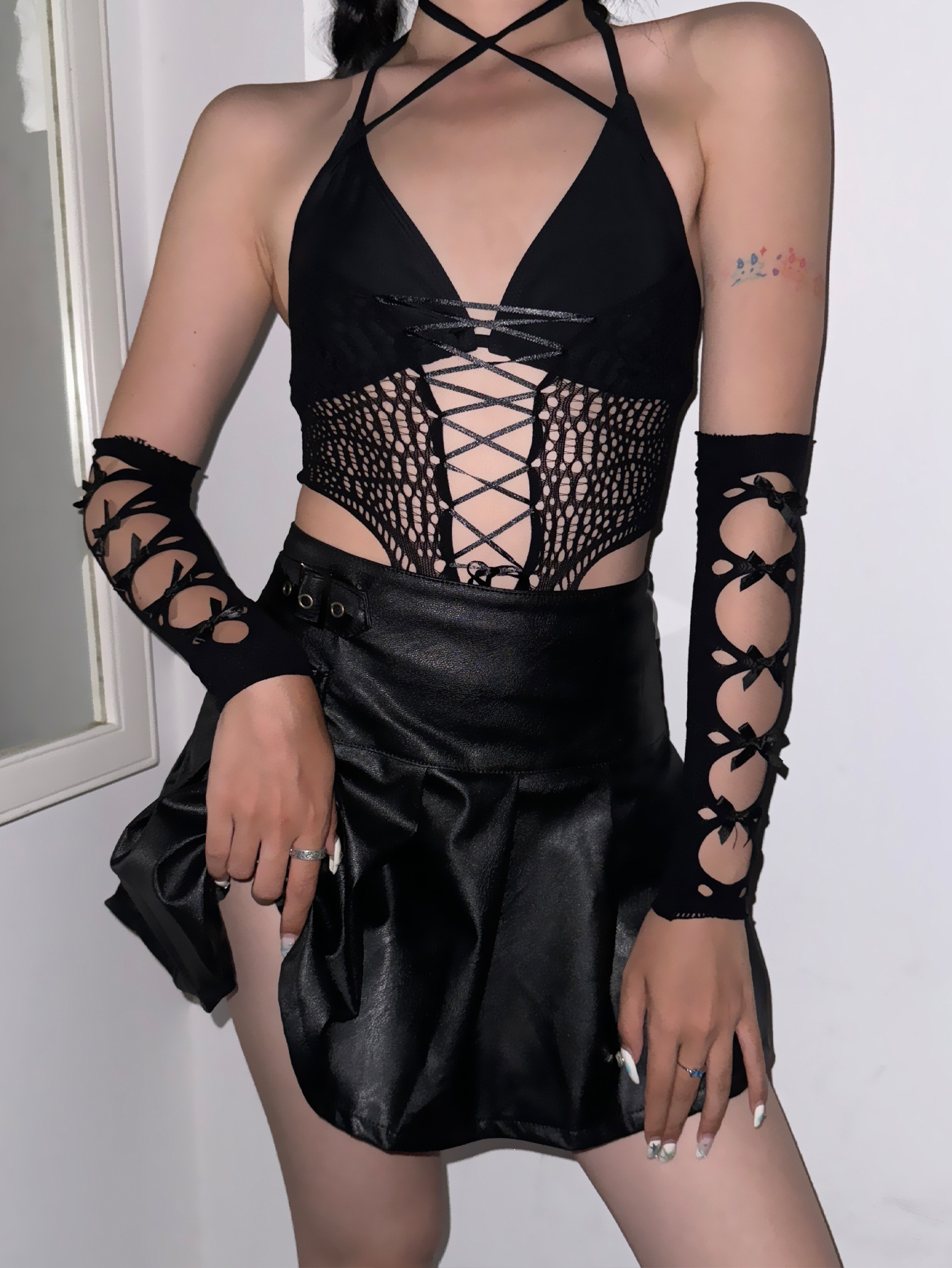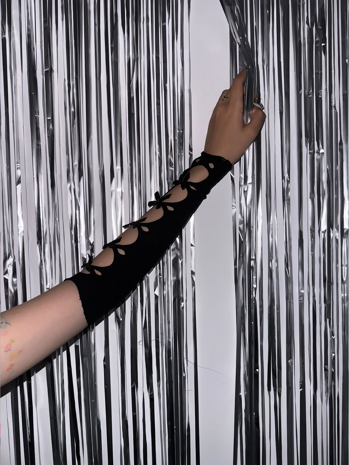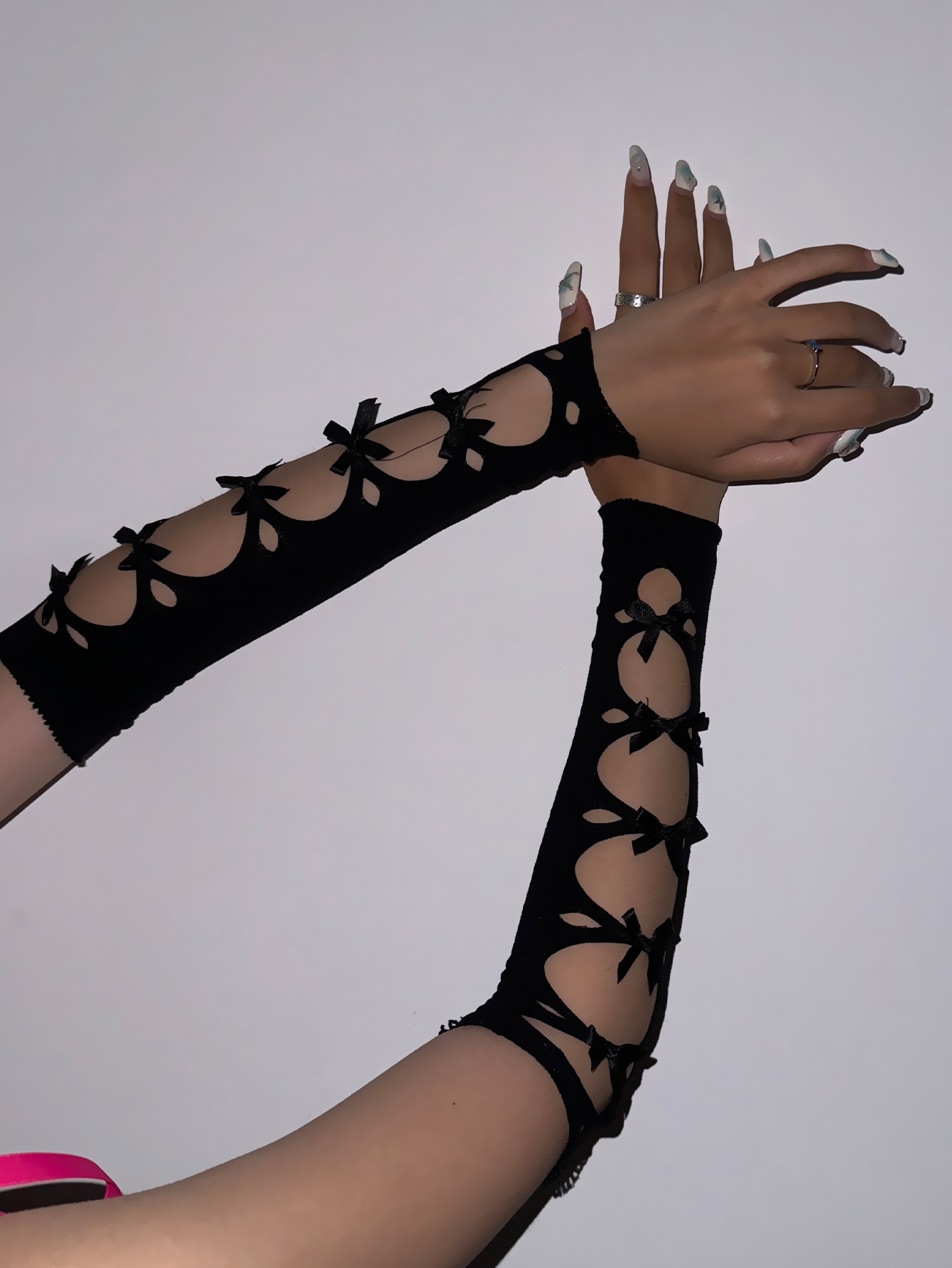패션 섹시한 활 로리타 디스코 Fishnet 블랙 스트레치 장갑 여성 전자 음악 축제 에티켓 의류 액세서리