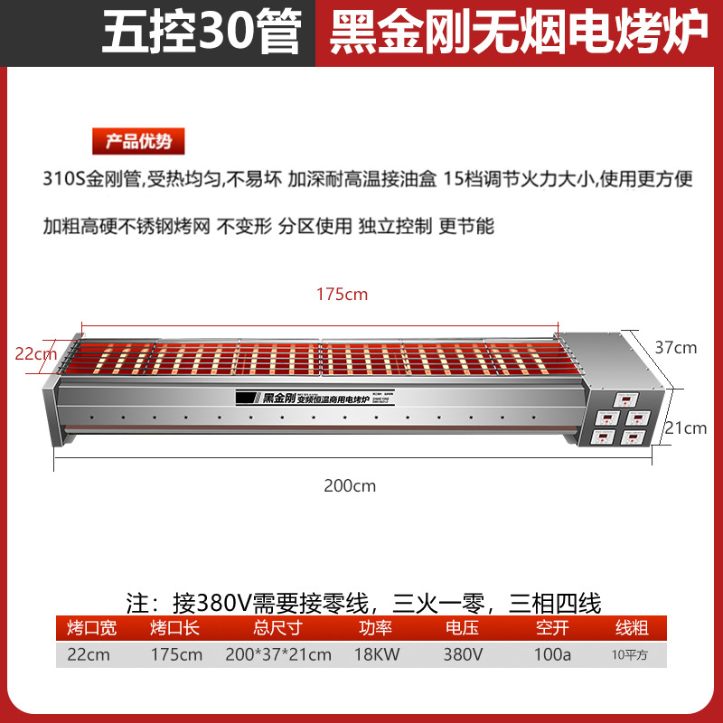 • [주파수 변환 항온] 5제어 30튜브 2.0m 그릴 175*20cm 16.5KW (380V 공기 스위치에 연결)