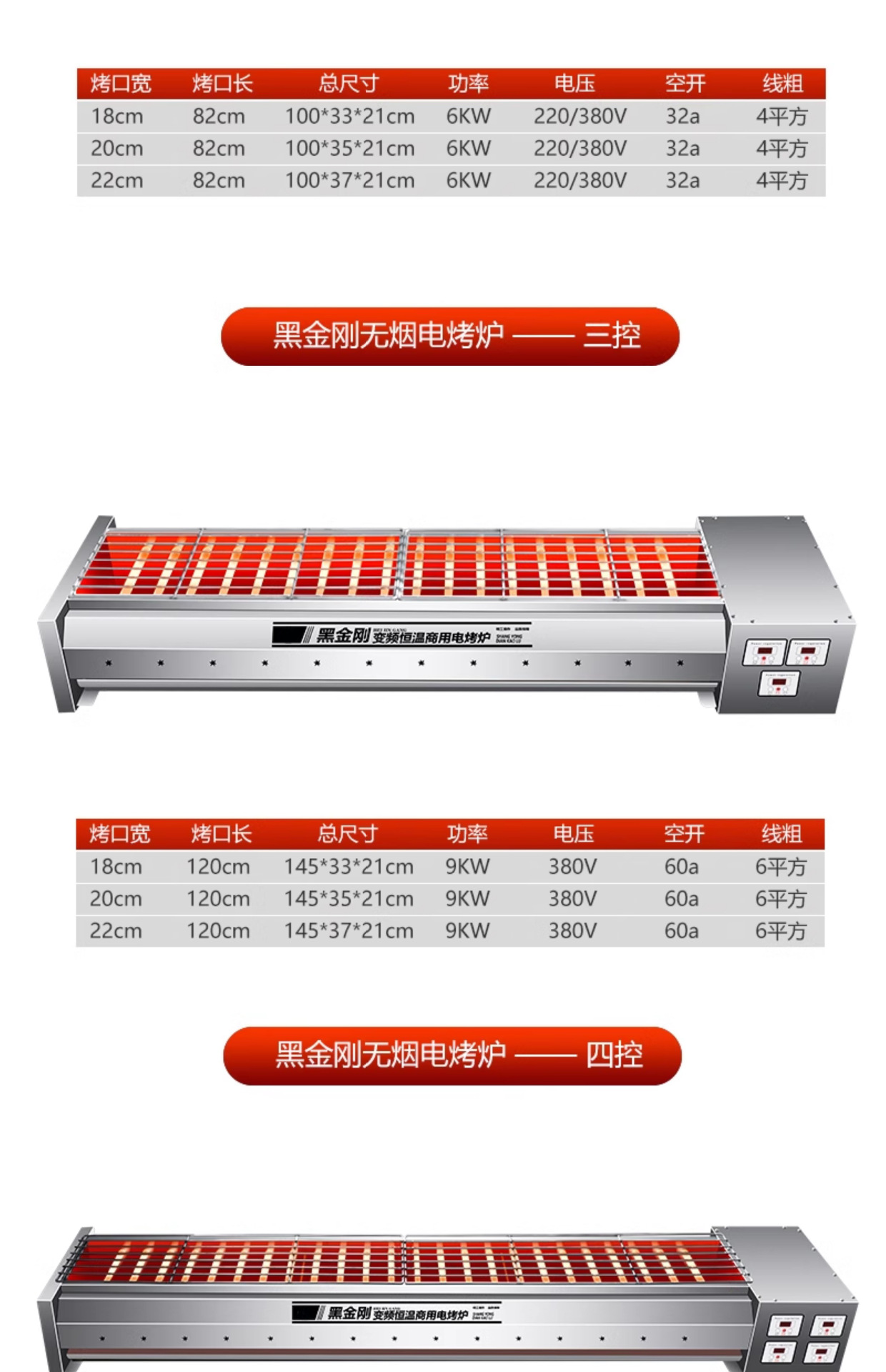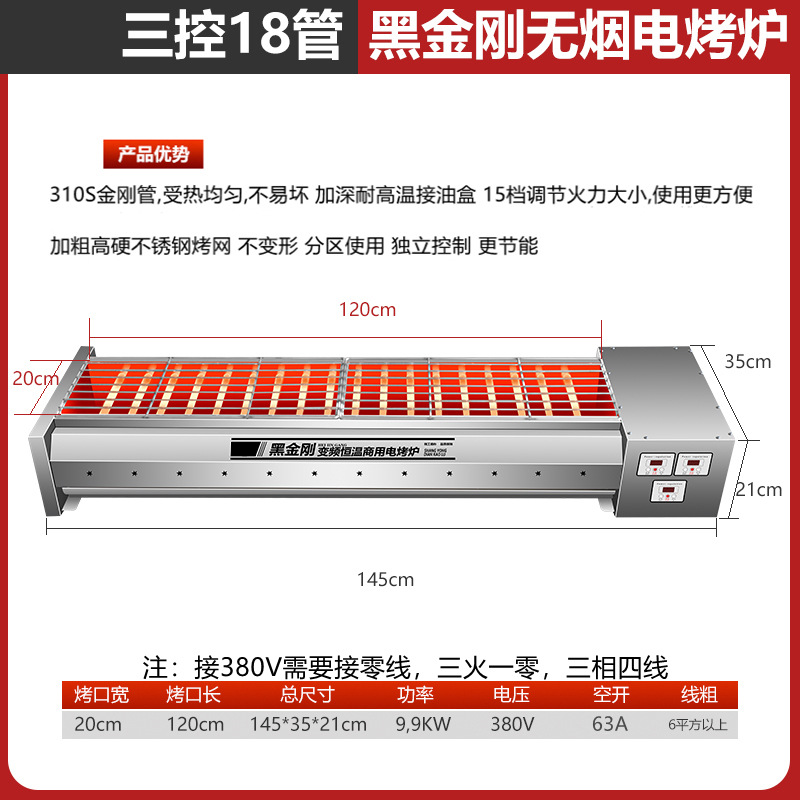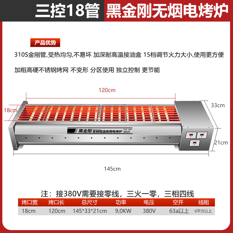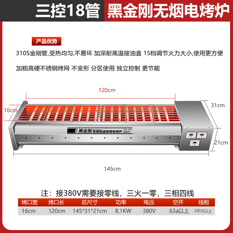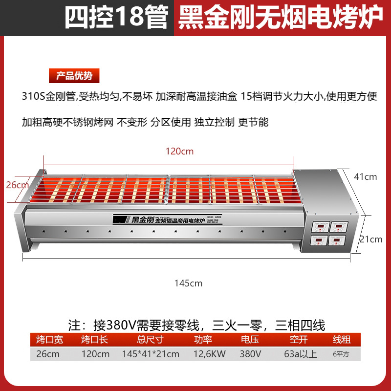 • [주파수 변환 항온] 제어 장치 4개, 튜브 18개, 그릴 개구부 1.45m개, 120*26cm, 12.6KW(380V 연결 회로 차단기)