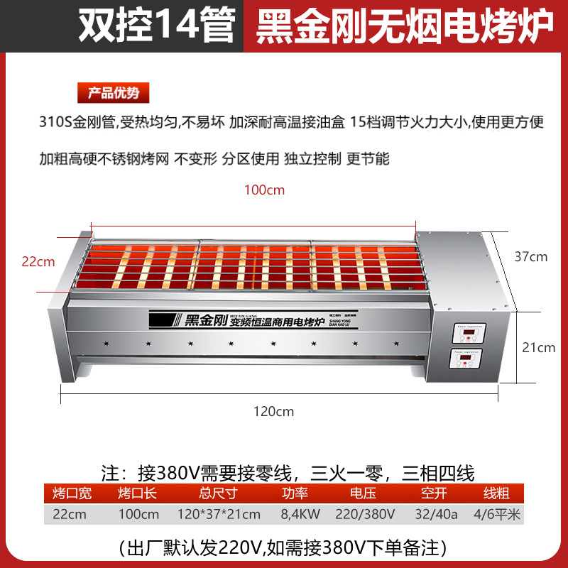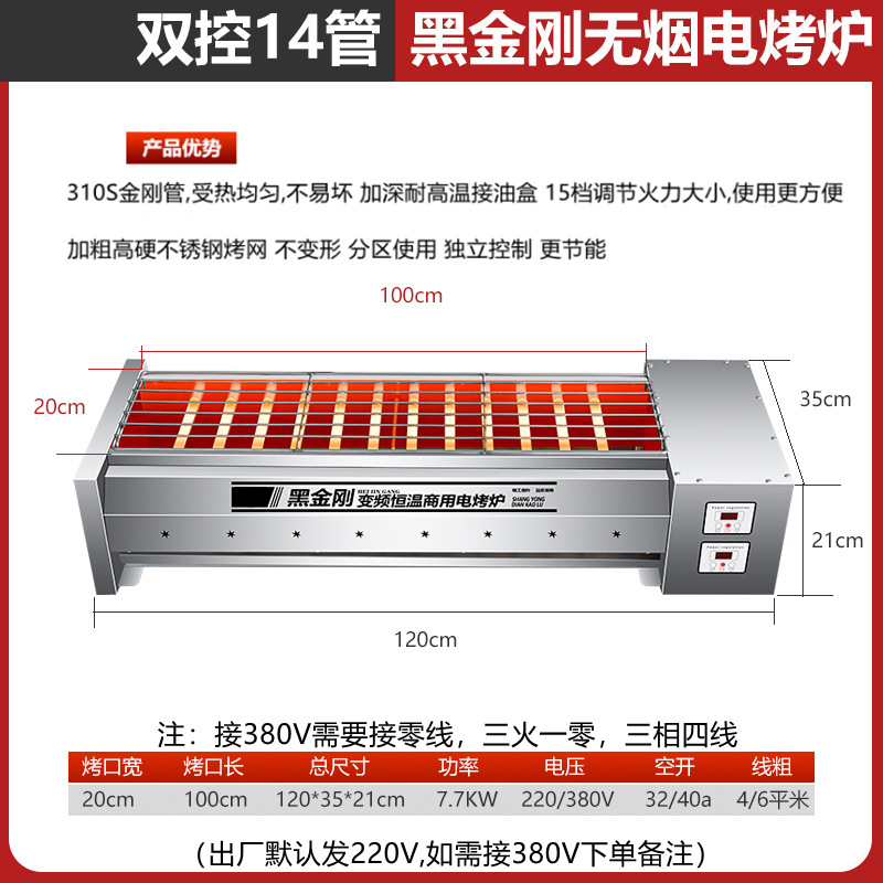 • [주파수 변환 항온] 3제어 14튜브 1.2m 그릴 개구부 95*30cm 11.2KW (380V 공기 스위치에 연결)